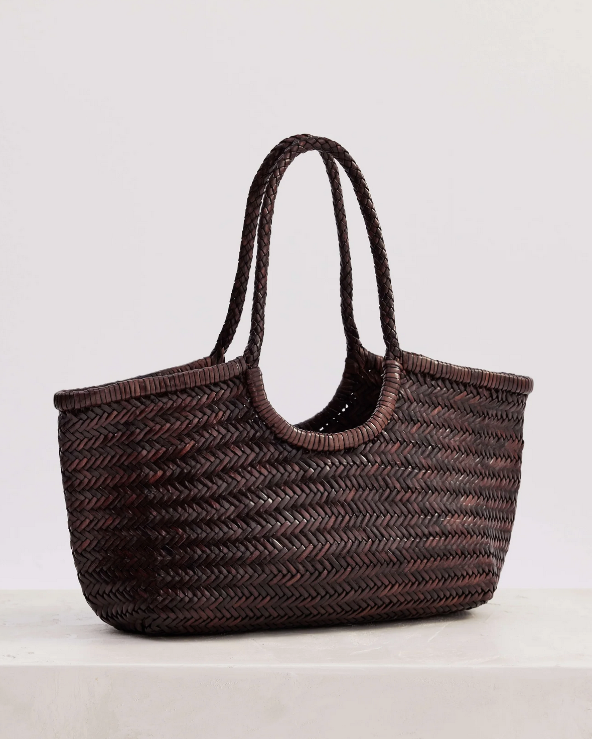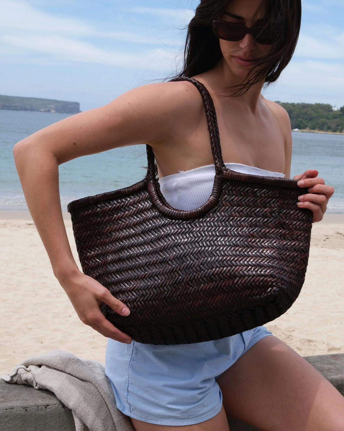 The Cove Bag is a shoulder bag made from hand-woven leather. This traditional style basket bag has a sculptural curve and effortlessly elevates any outfit.