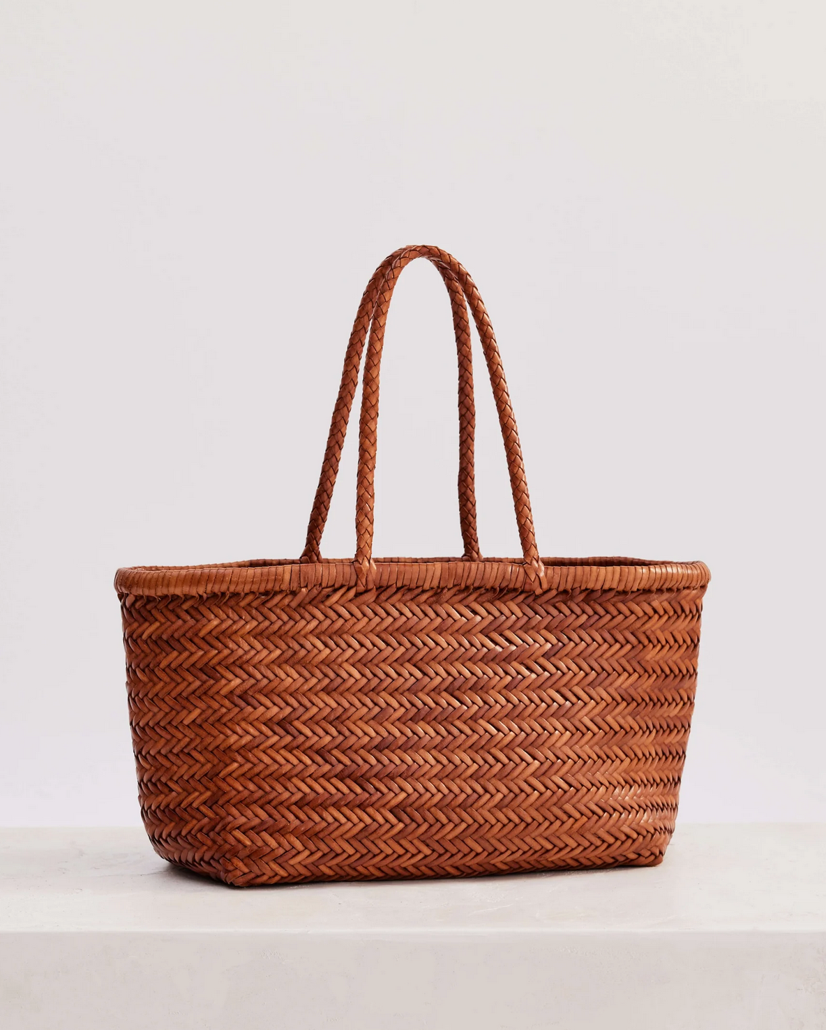 The Dune Basket is a shoulder bag made from hand-woven leather. Lightweight and practical, the Dune Basket is a traditional style basket bag in a medium size.