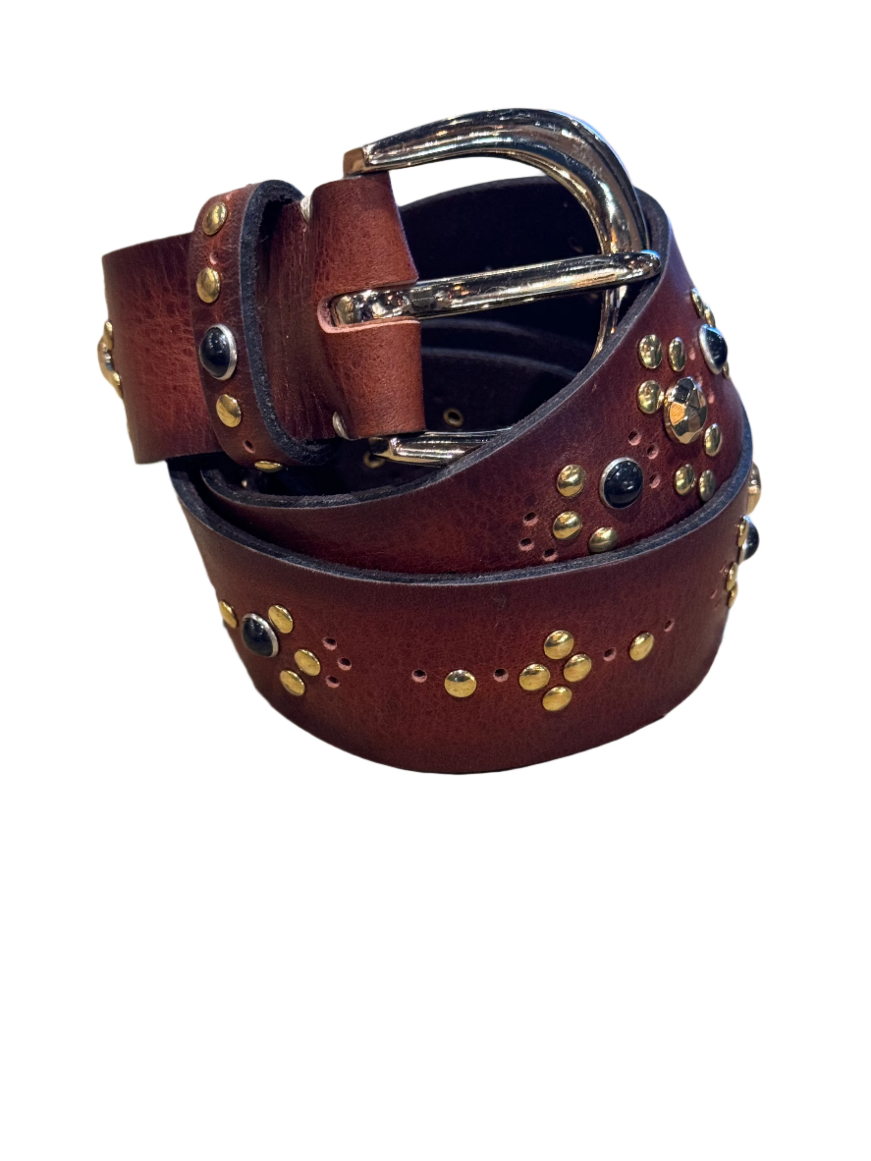 Experience true luxury with B.Belt Vera Belt in Baileys, designed and handcrafted in Germany by skilled artisans. Made with genuine full-grain leather, every detail is meticulously crafted, from the intricate stud and perforation designs to the polished gold buckle. Elevate your wardrobe with this 3.5cm width belt.