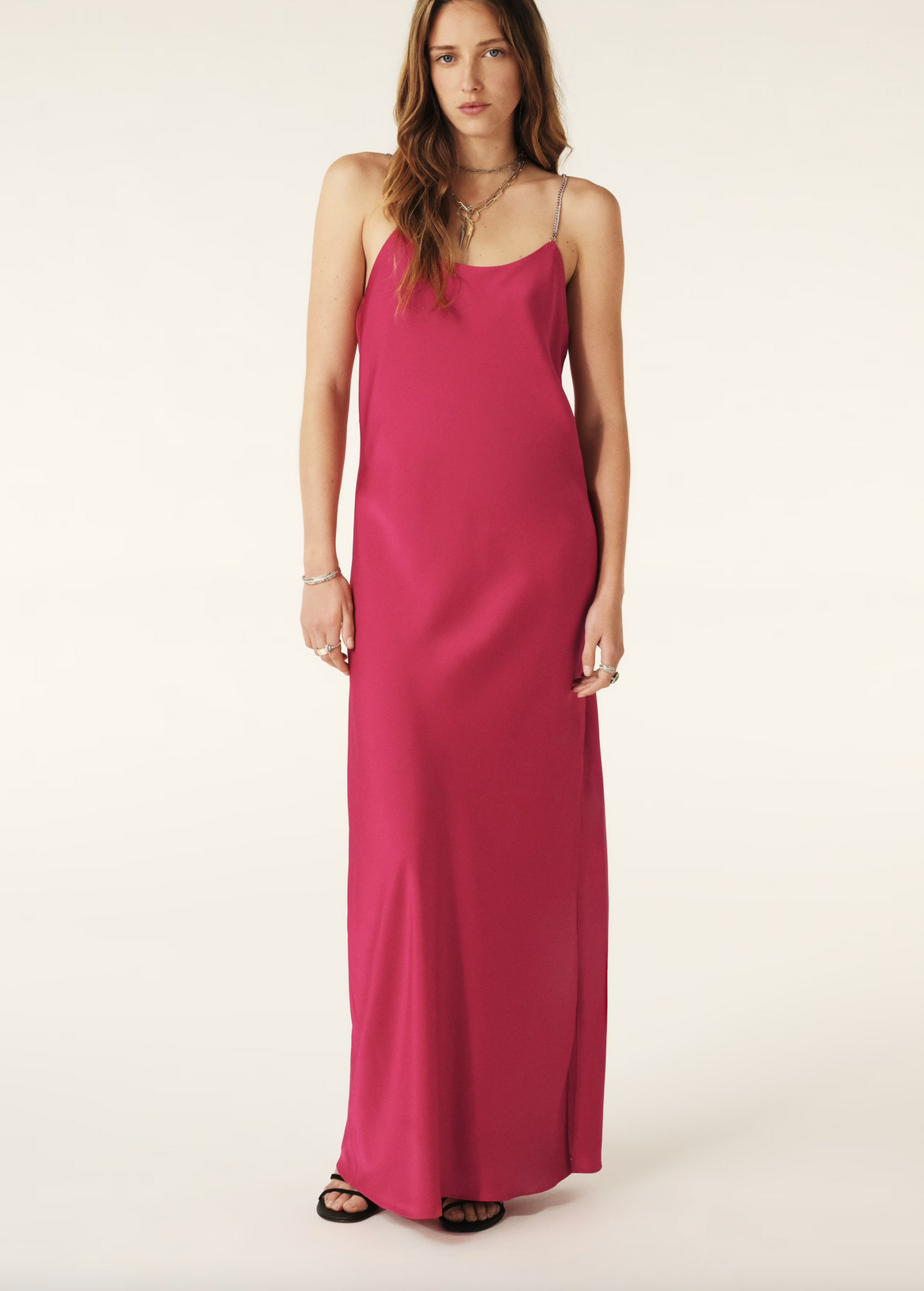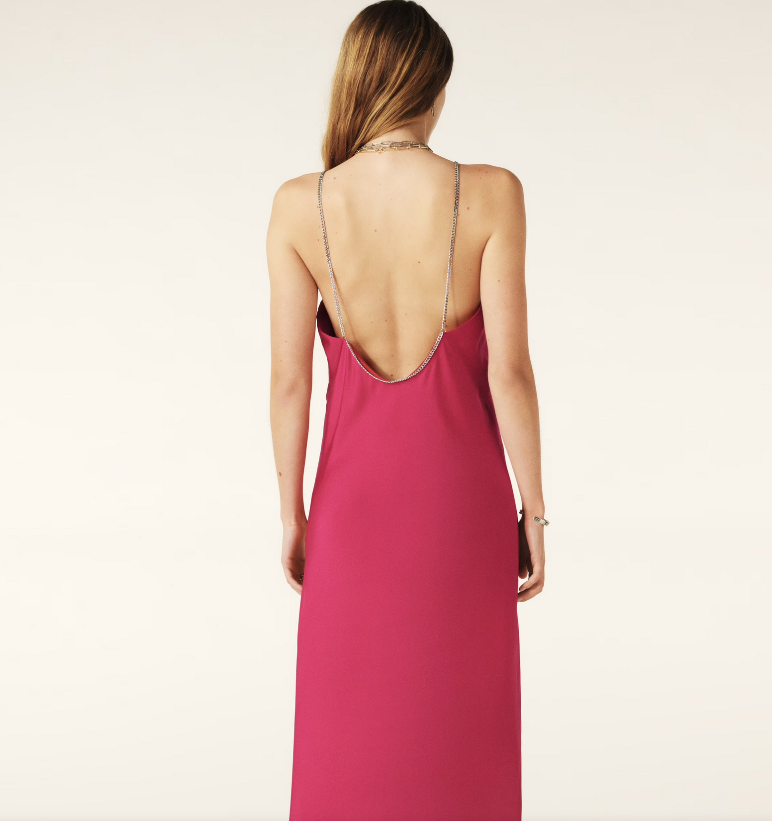 - Spaghetti straps with a silvery chain