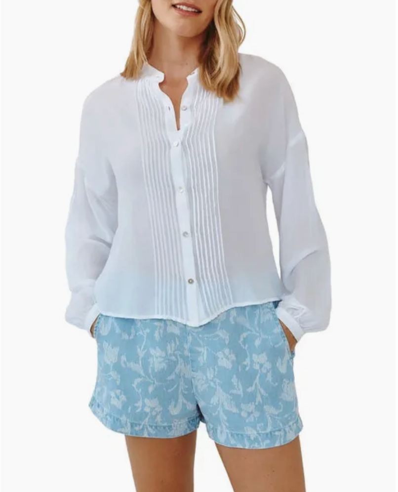 Bella Dahl Long Sleeve Drop Shoulder Pin Tuck Shirt / White