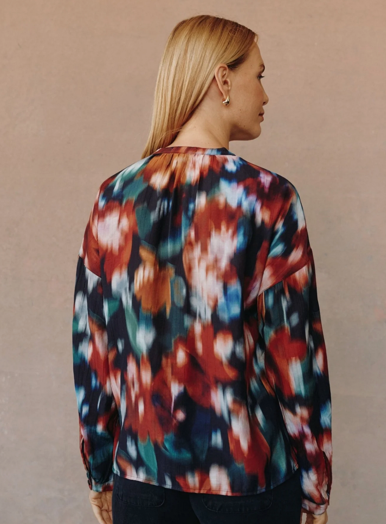 Bella Dahl Mandarin Collar Button Down / Blurred Floral