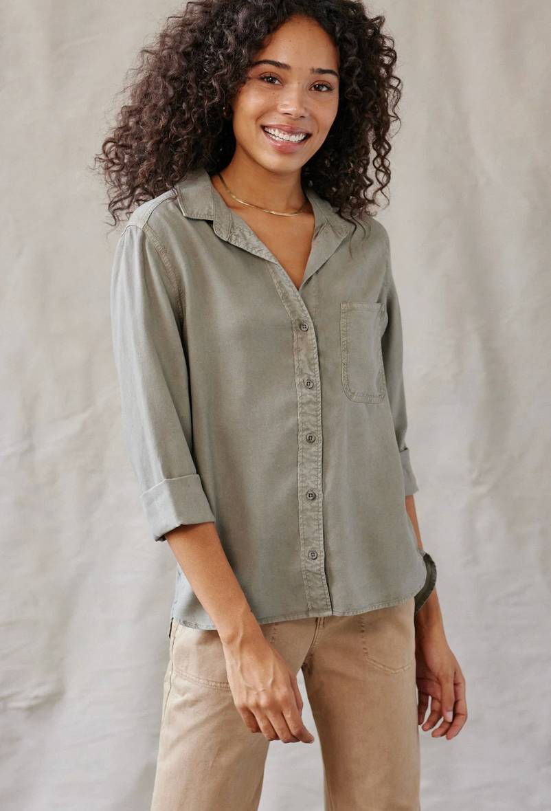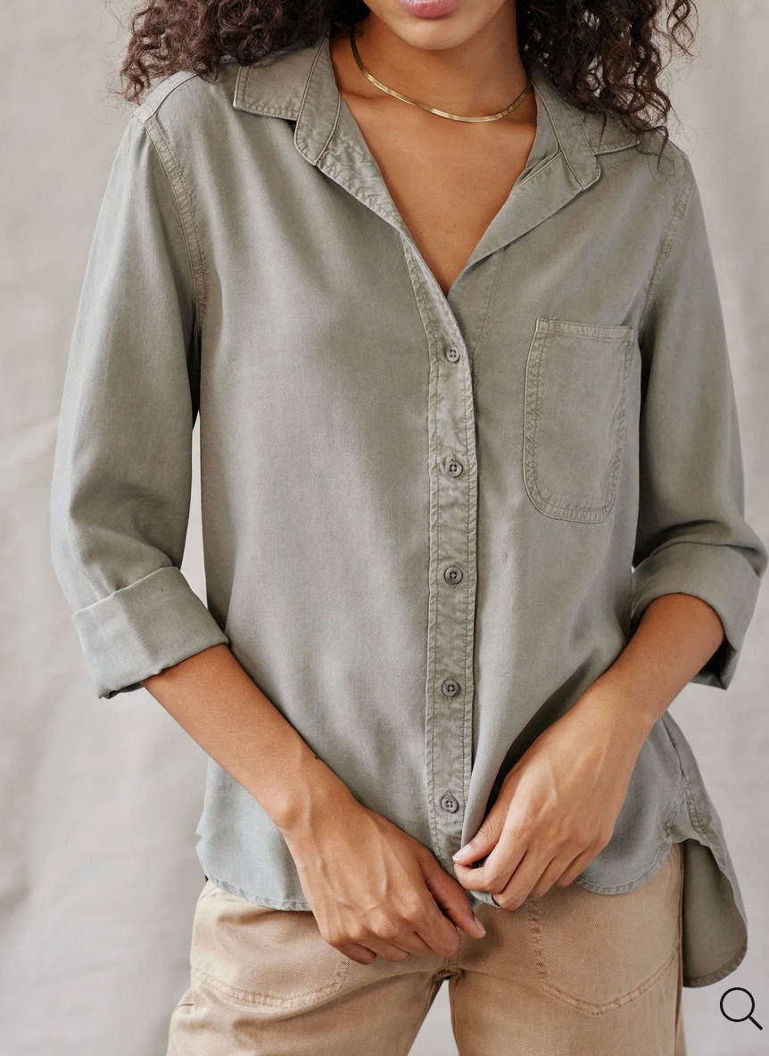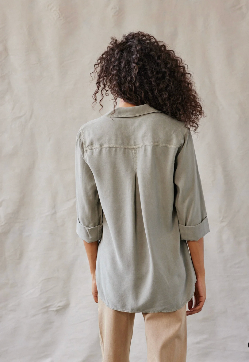 The Split Back Button Down is a signature button down designed with two chest pockets, a split back detail and roll tab sleeves.
