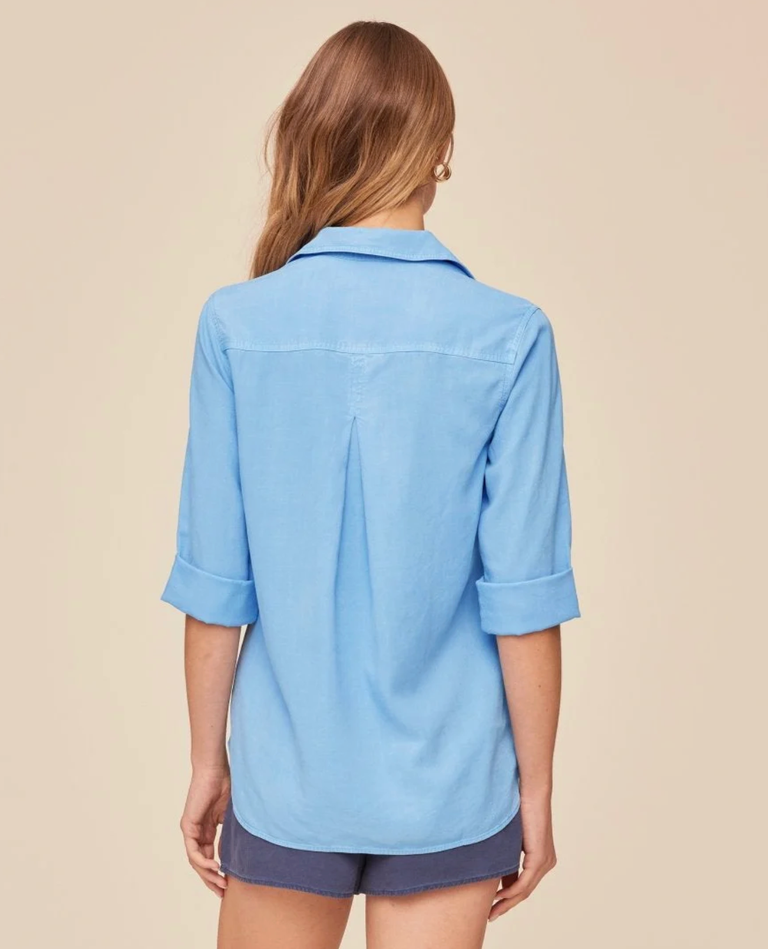 The Split Back Button Down is a signature button down designed with two chest pockets, a split back detail and roll tab sleeves.