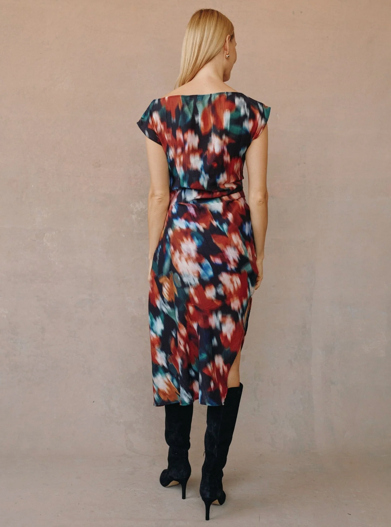 Bella Dahl Boat Neck Cap Sleeved Midi Dress / Blurred Floral