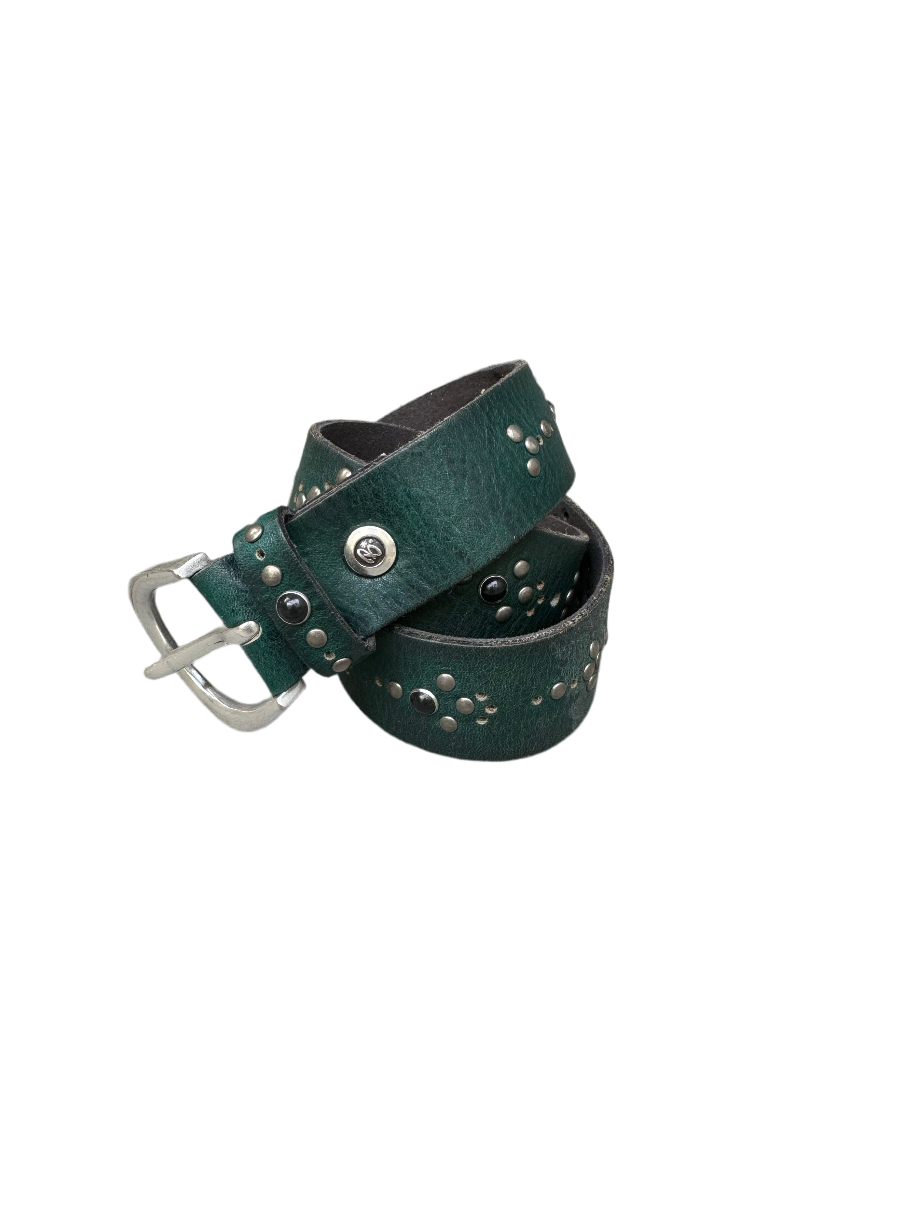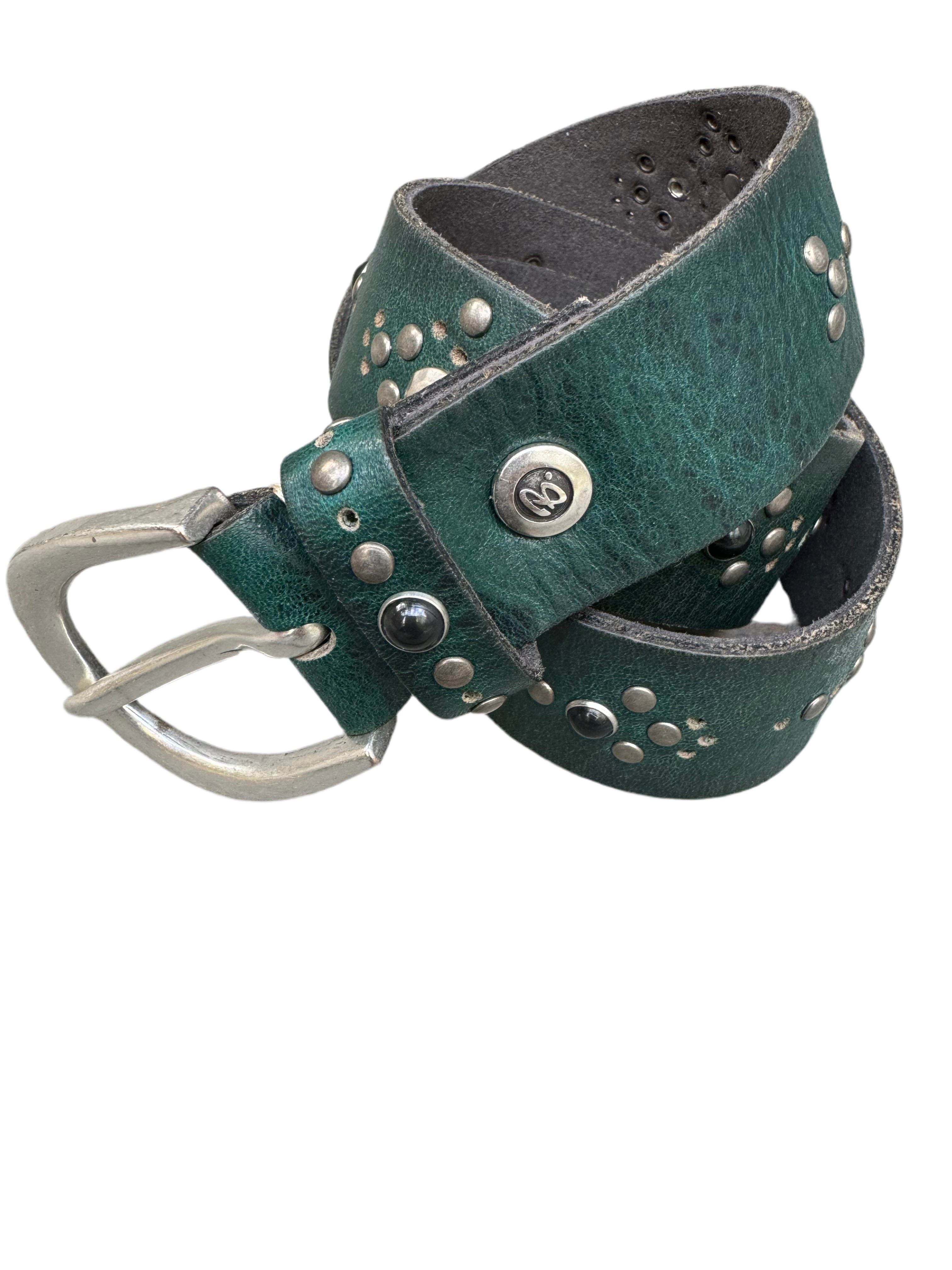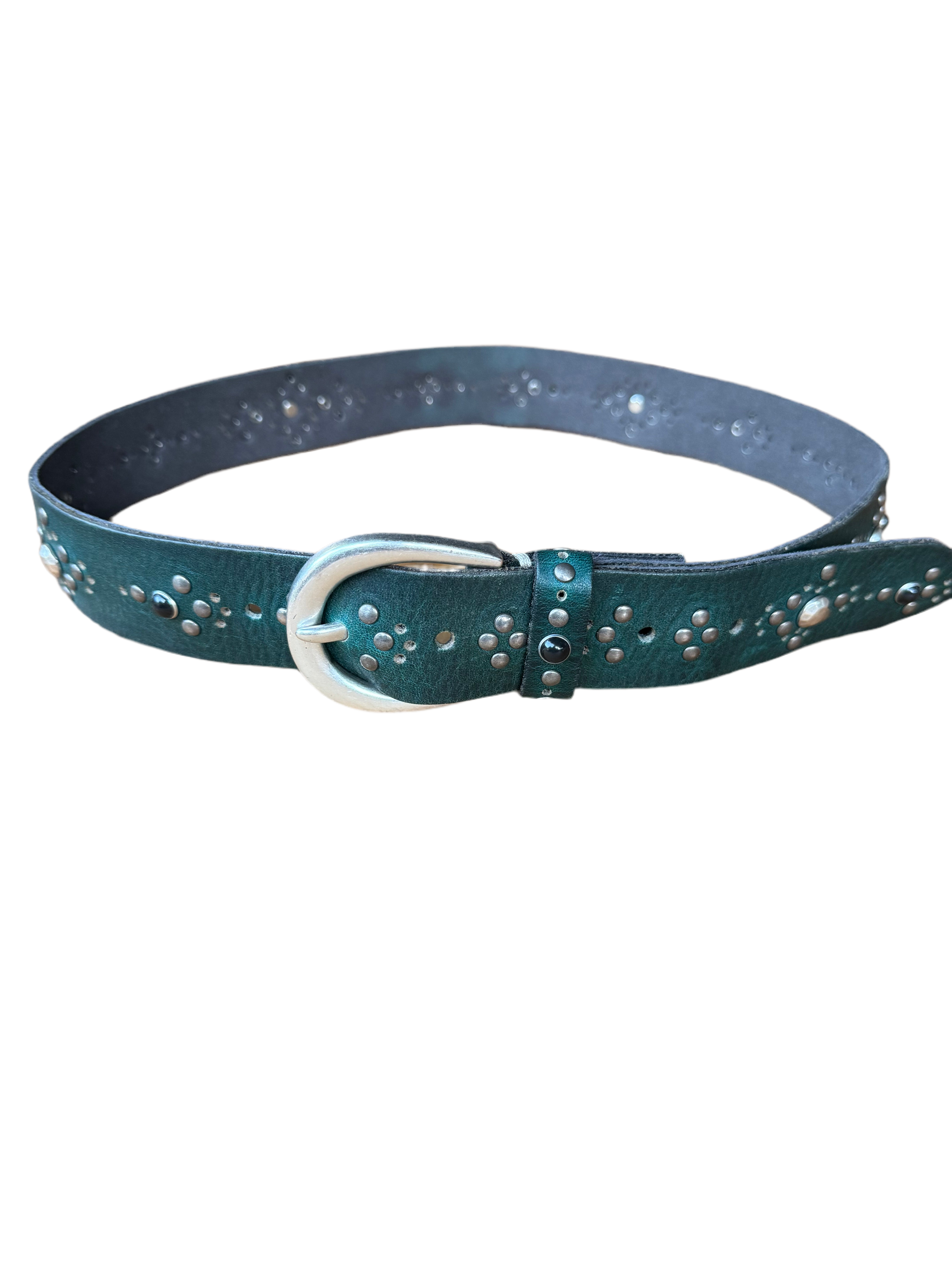 Experience true luxury with B.Belt Vera Belt in Teal, designed and handcrafted in Germany by skilled artisans. Made with genuine full-grain leather, every detail is meticulously crafted, from the intricate stud and perforation designs to the polished silver buckle. Elevate your wardrobe with this 3.5cm width belt.