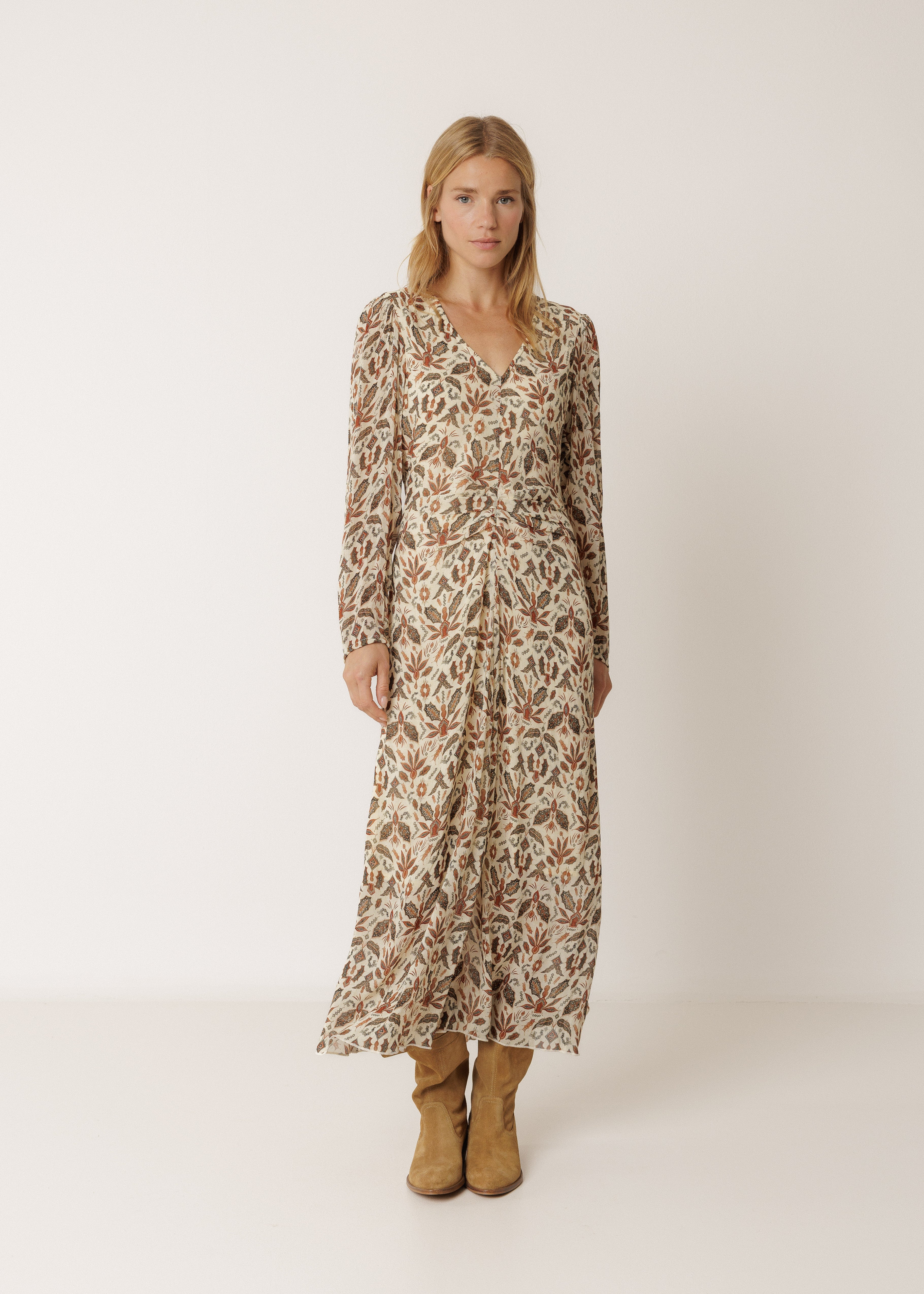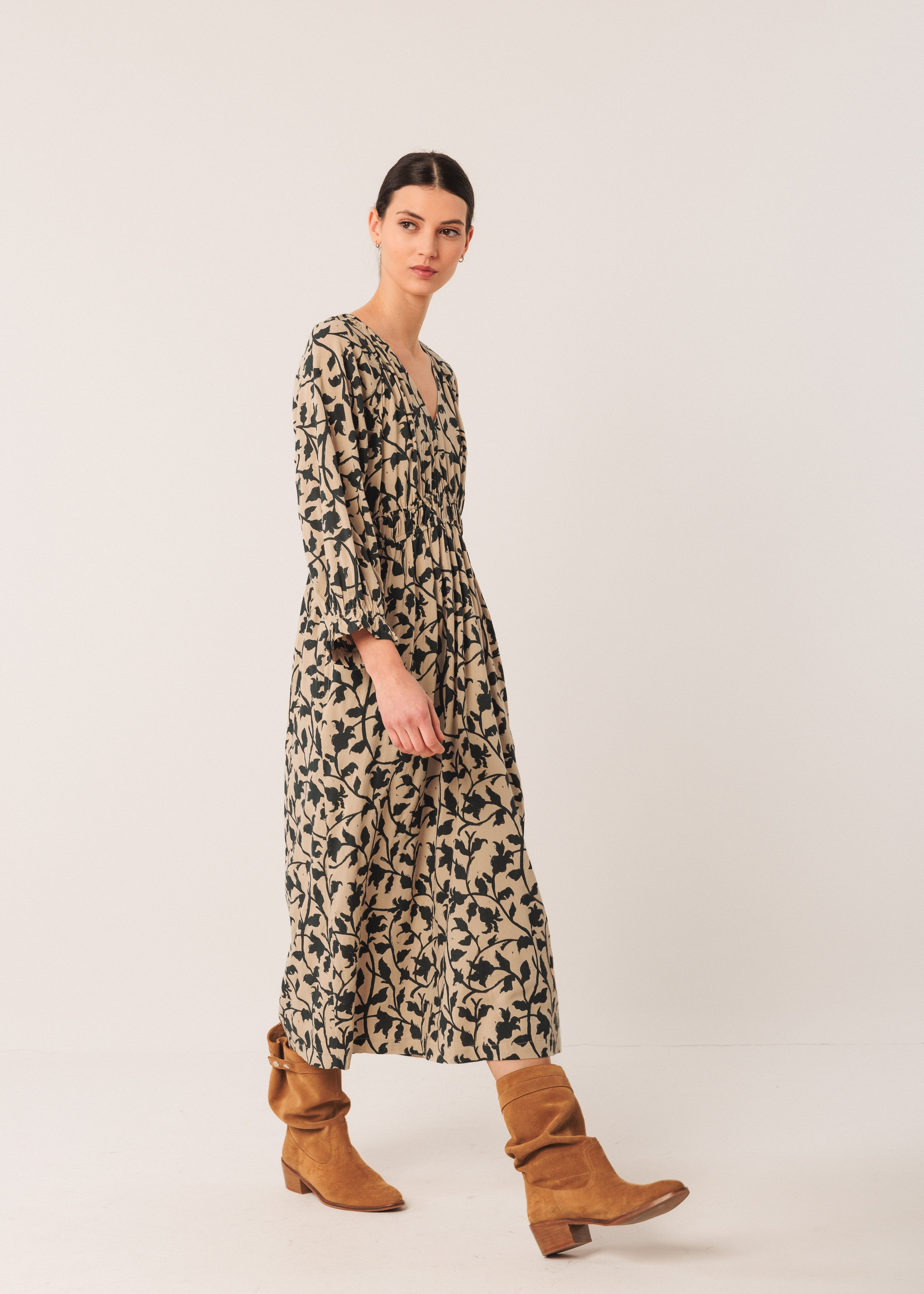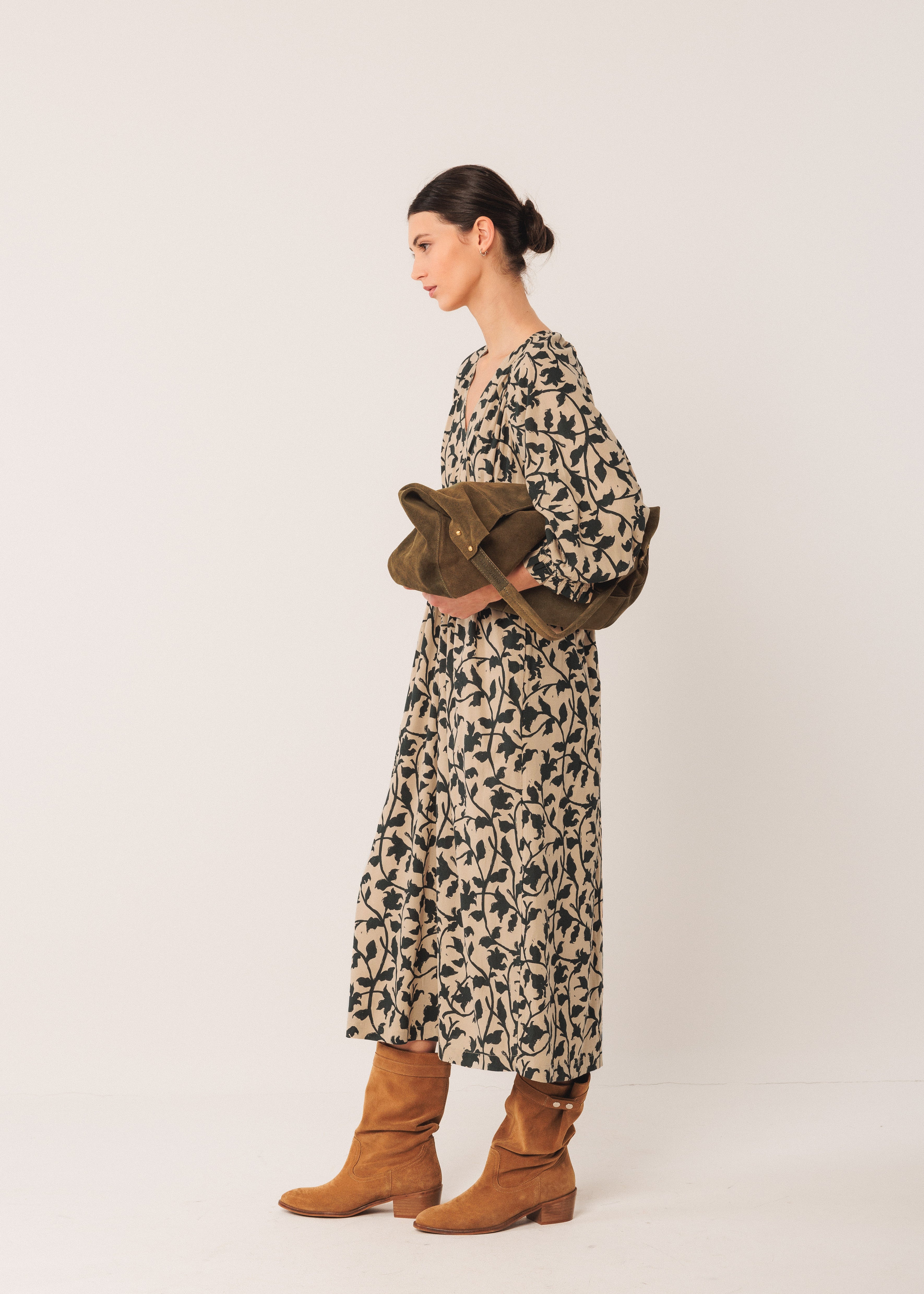 CaCay Jari Dress with Straight Neckline and Print / Medium Green