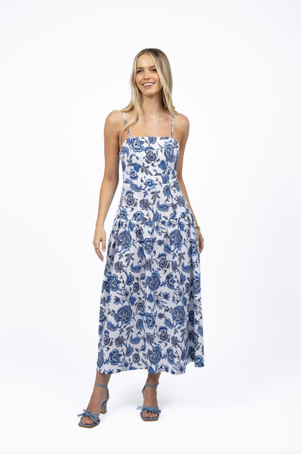- Drop seam skirt with gathering at lower panel creating a flowy fit.