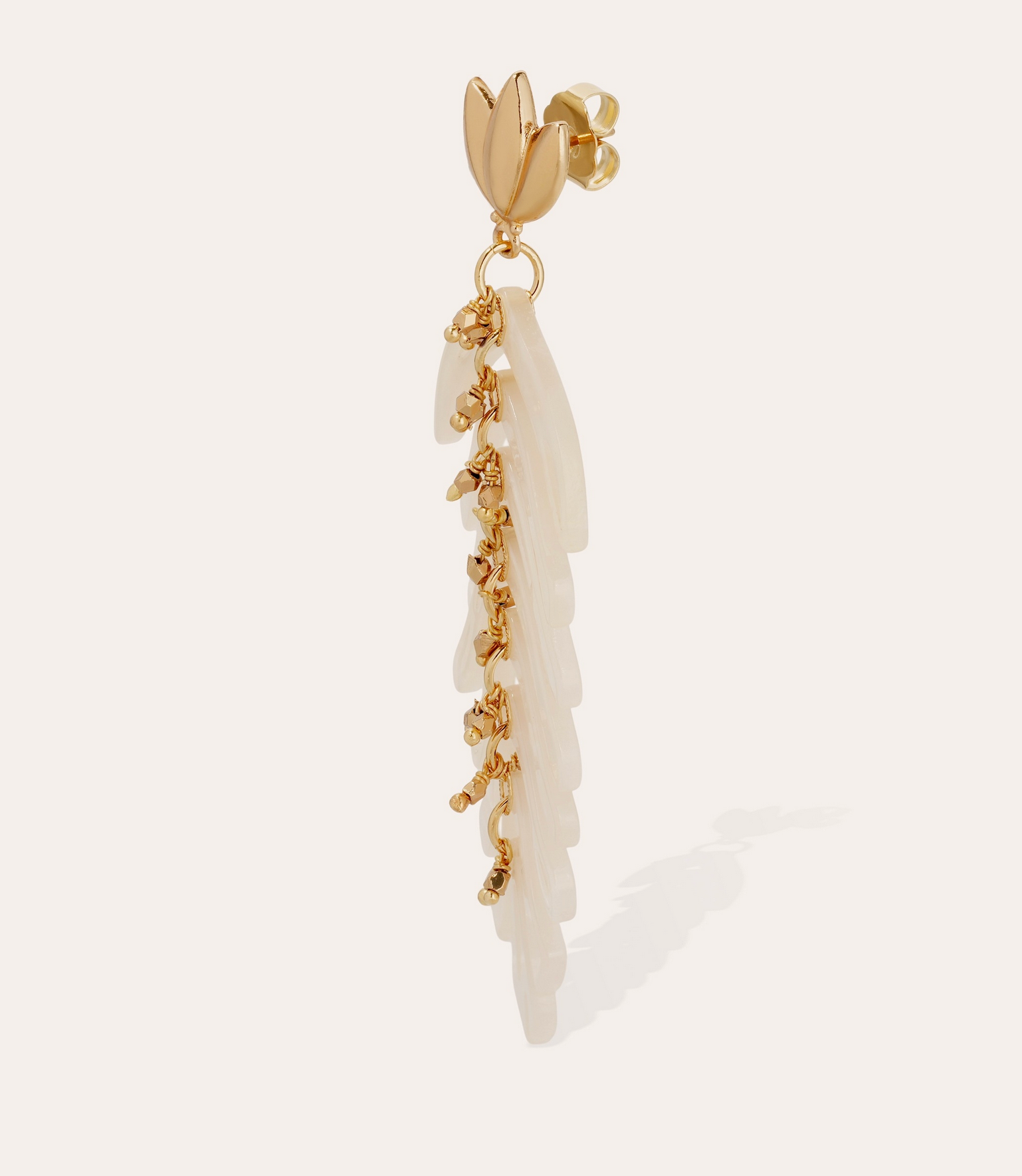 Gold-plated earrings featuring a delicate composition of finely cut acetate pieces, hand-polished in our Maison-atelier in Marseille. Embellished with pearls, gold-plated charms, and sparkling rhinestones, they combine lightness and elegance. A refined creation born from exceptional artisanal savoir-faire.