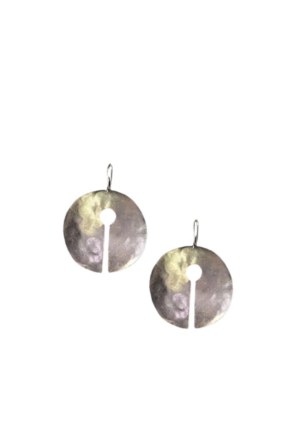 These lightweight earrings are handcrafted with hammered Sterling Silver & 18K Gold Plated Yellow Brass. With their unique design and materials, they offer a luxurious and exclusive touch to any outfit.