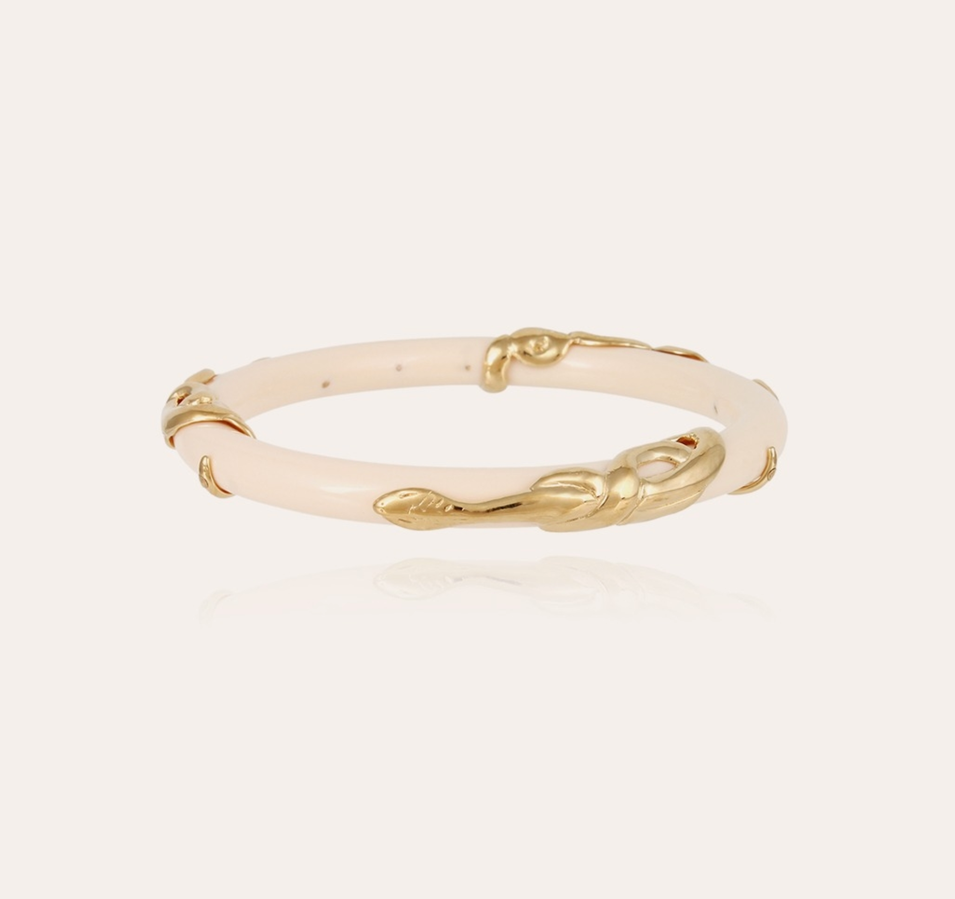 From the Cobra collection, this acetate bangle bracelet, delicately hand-polished in our Maison Atelier, is adorned with a fine gold snake. A symbol of strength and mystery, it wraps elegantly around the wrist, playing on contrasting textures and reflections. A bold creation that combines character and refinement.