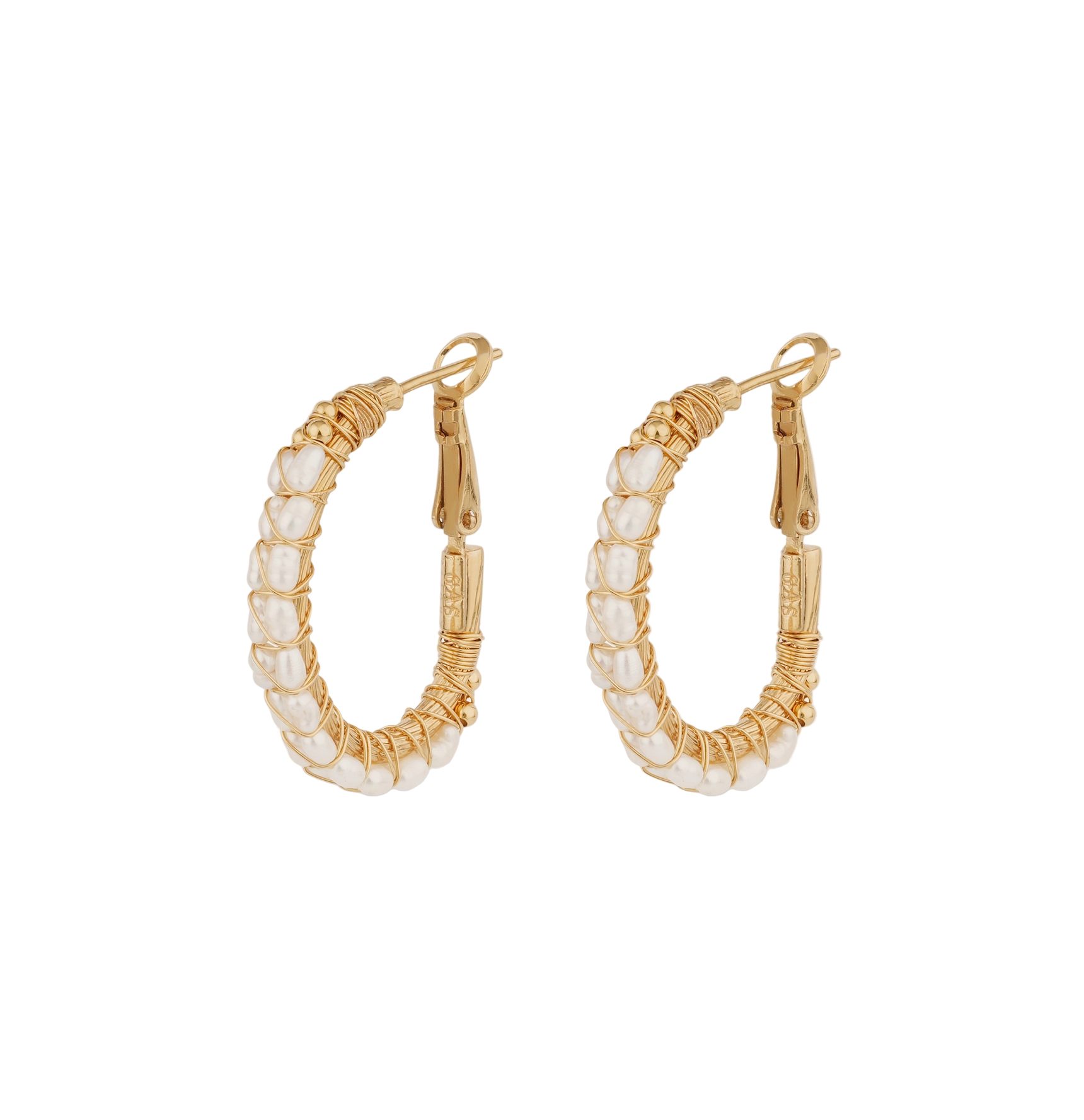 Delicate gold-plated hoop earrings adorned with pearls. The Lyre hoop earrings, jewels woven with light, celebrate the art of thread. A metal thread is wrapped around the white mother-of pearl in a meticulous and precious gesture. Inspired by artisanal weaving, they embody the expertise of our Maison Atelier.