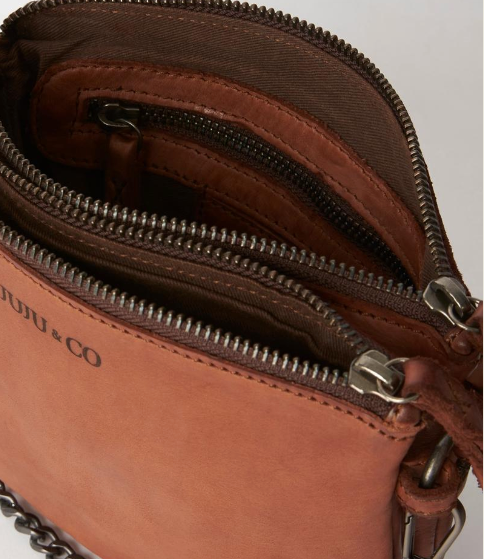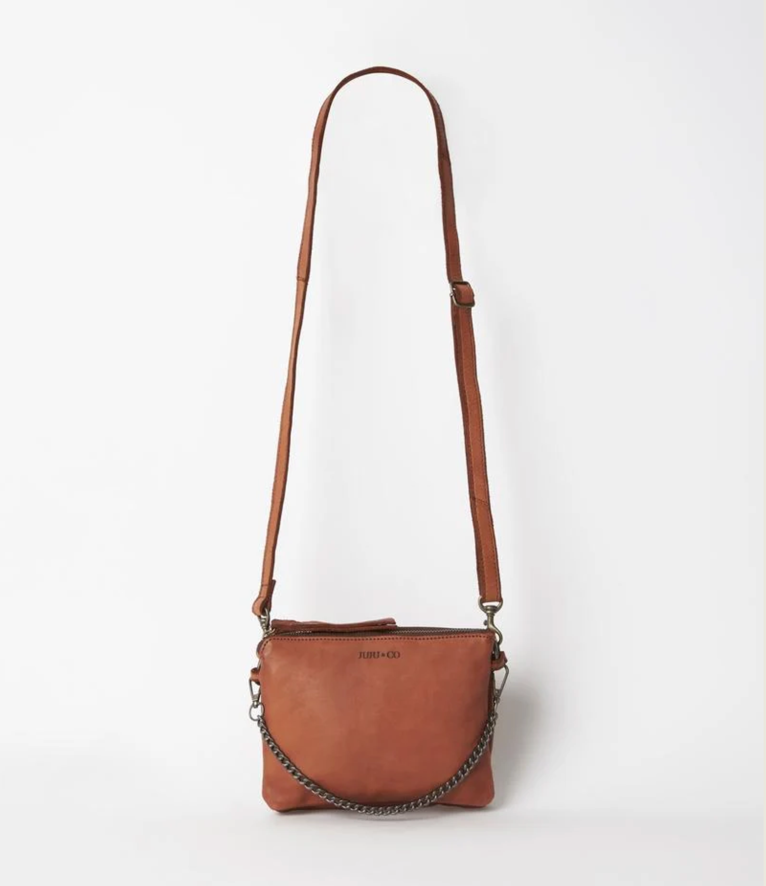 With a detachable chain and adjustable leather shoulder strap, our Good Juju Bagis perfect for both the day and evening. It is double-bodied for extra space and features an internal pocket and three card slots. Either wear as a shoulder bag, or as a clutch by removing the long strap and clipping both ends of the chain to one ring to form a wrist strap.
