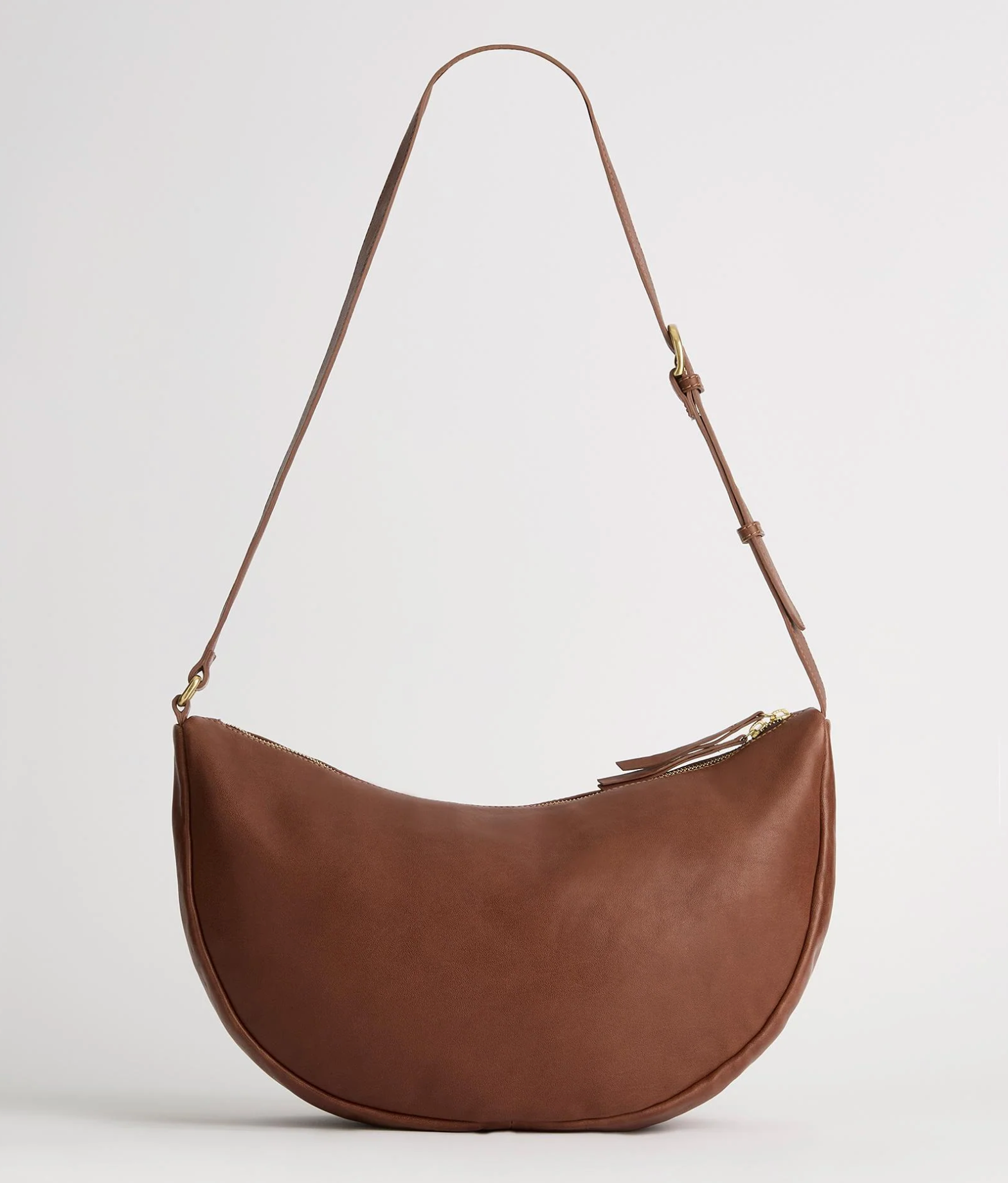 The Stevie Sling is crafted from buttery lambskin leather in a slouchy silhouette for that effortlessly cool look. An oversized version of our best-selling Shasta Sling, Stevie is generously proportioned to carry your essentials in style. With a contrasting taupe cotton lining and internal zip pocket, Stevie is the ultimate day bag that effortlessly blends function with style.
