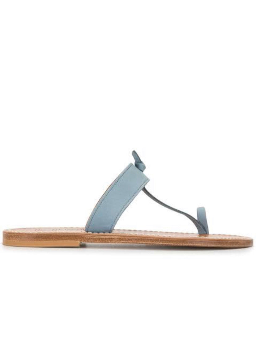 Jeans blue leather Ganges sandals by K. JACQUES aare crafted in the label’s St. Tropez workshop.