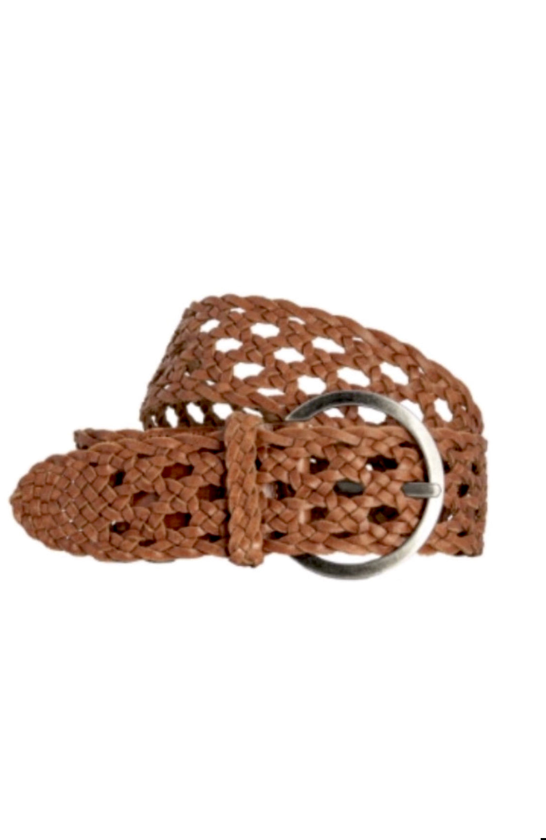 55mm Open Weave Braided/Plait Leather Belt with Antique Nickel Buckle