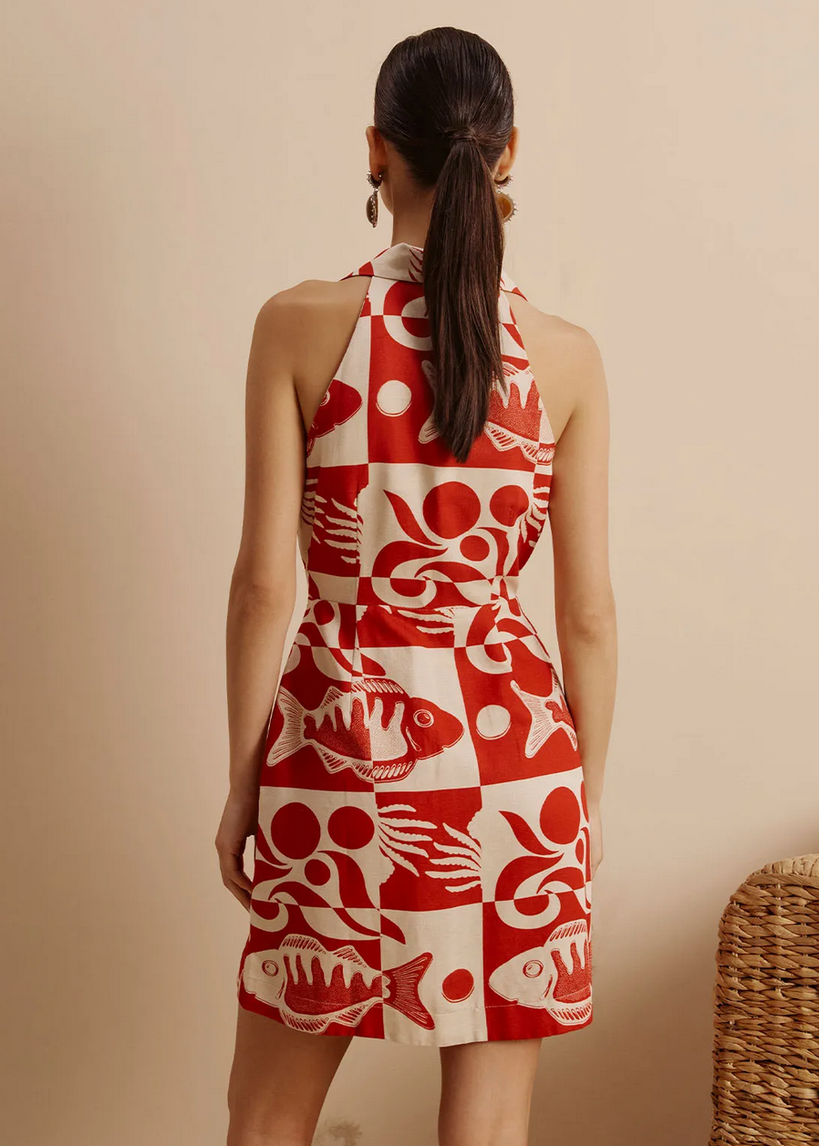 CaCay Tucunaré Print Wrap Dress / Red Fish