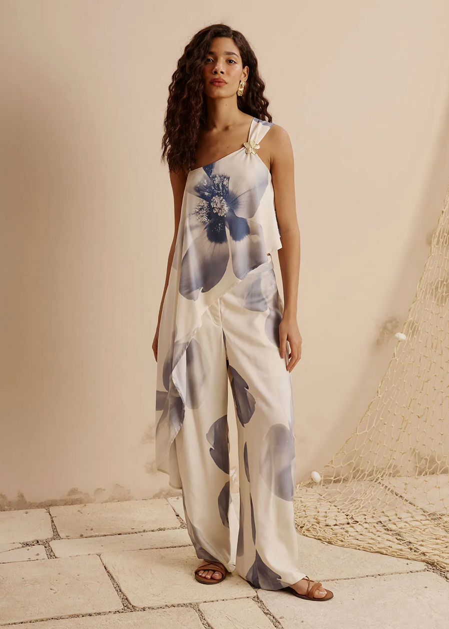 CaCay Iris Printed Wide-Leg Pants / Light Blue