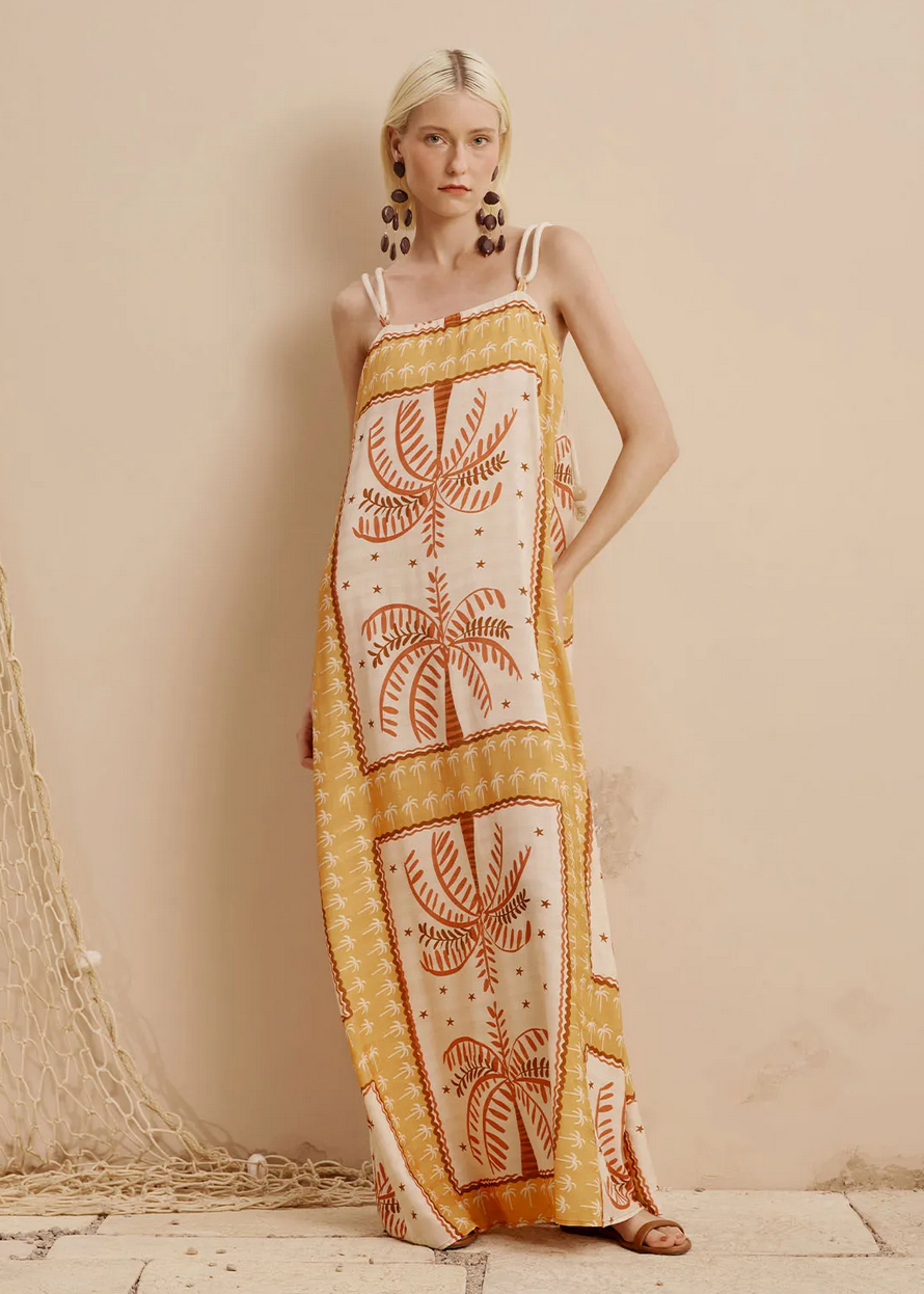 CaCay Copaiba Print Strappy Dress / Dark Yellow