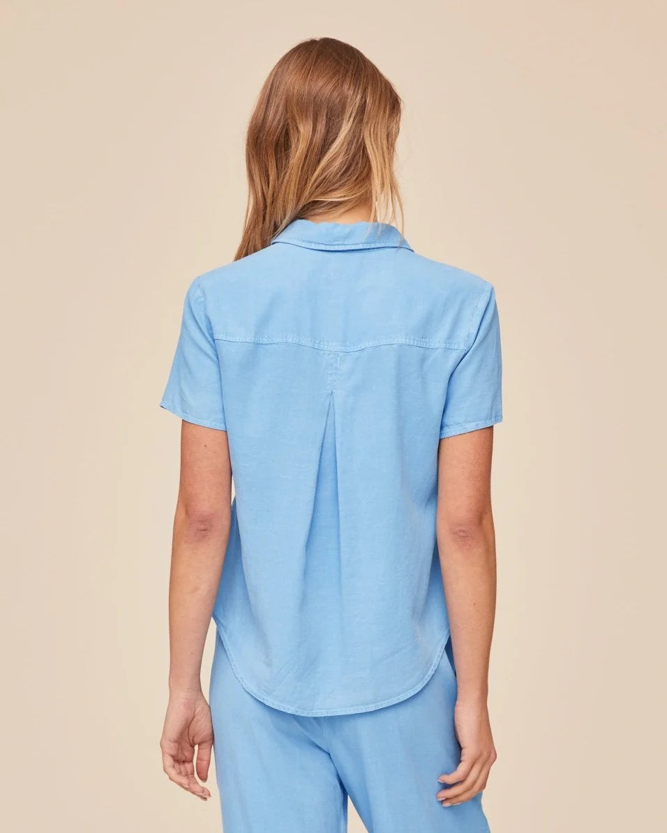 Bella Dahl Short Sleeve Pocket Button Down / Tidal Blue