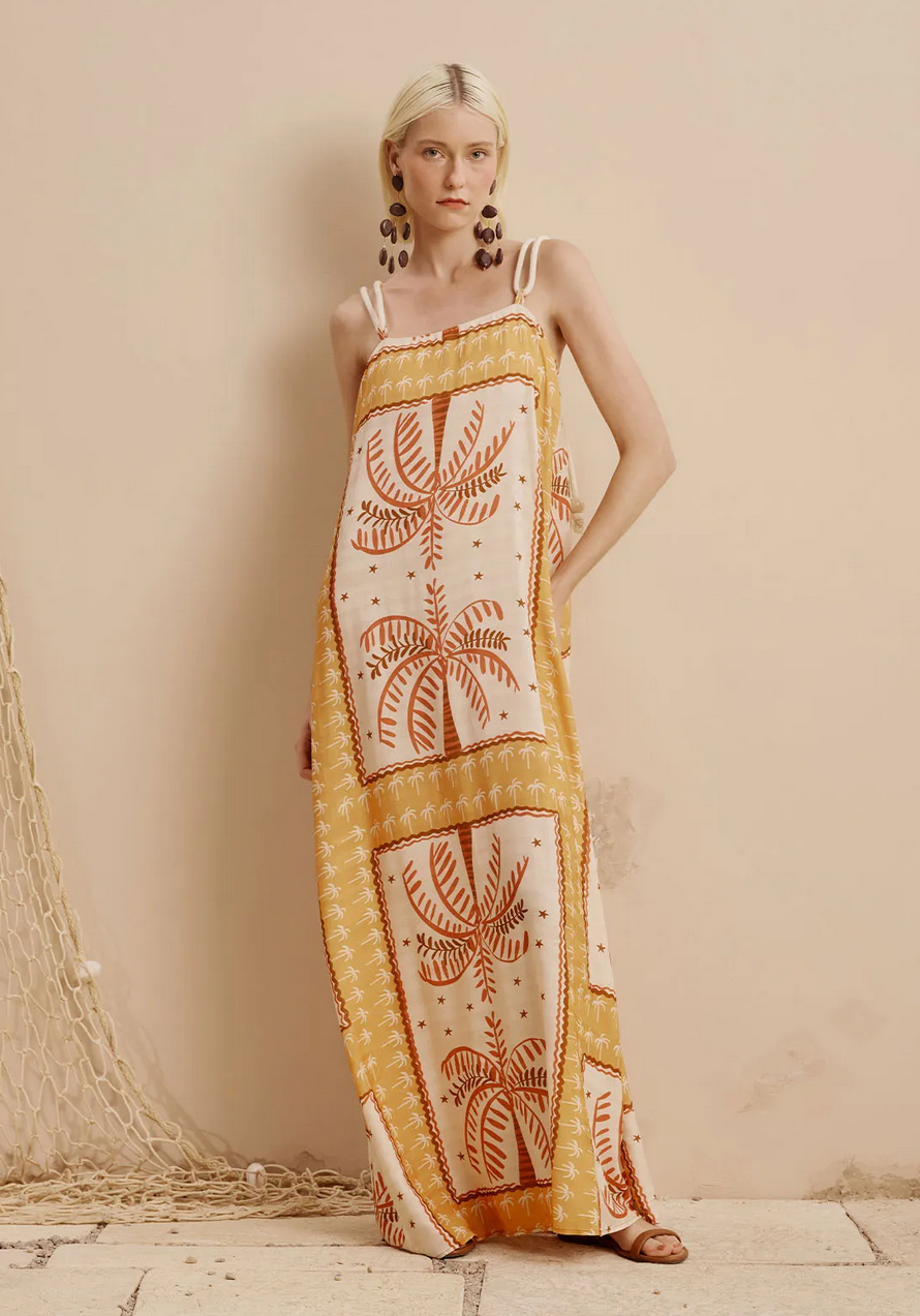 CaCay Copaiba Print Strappy Dress / Dark Yellow