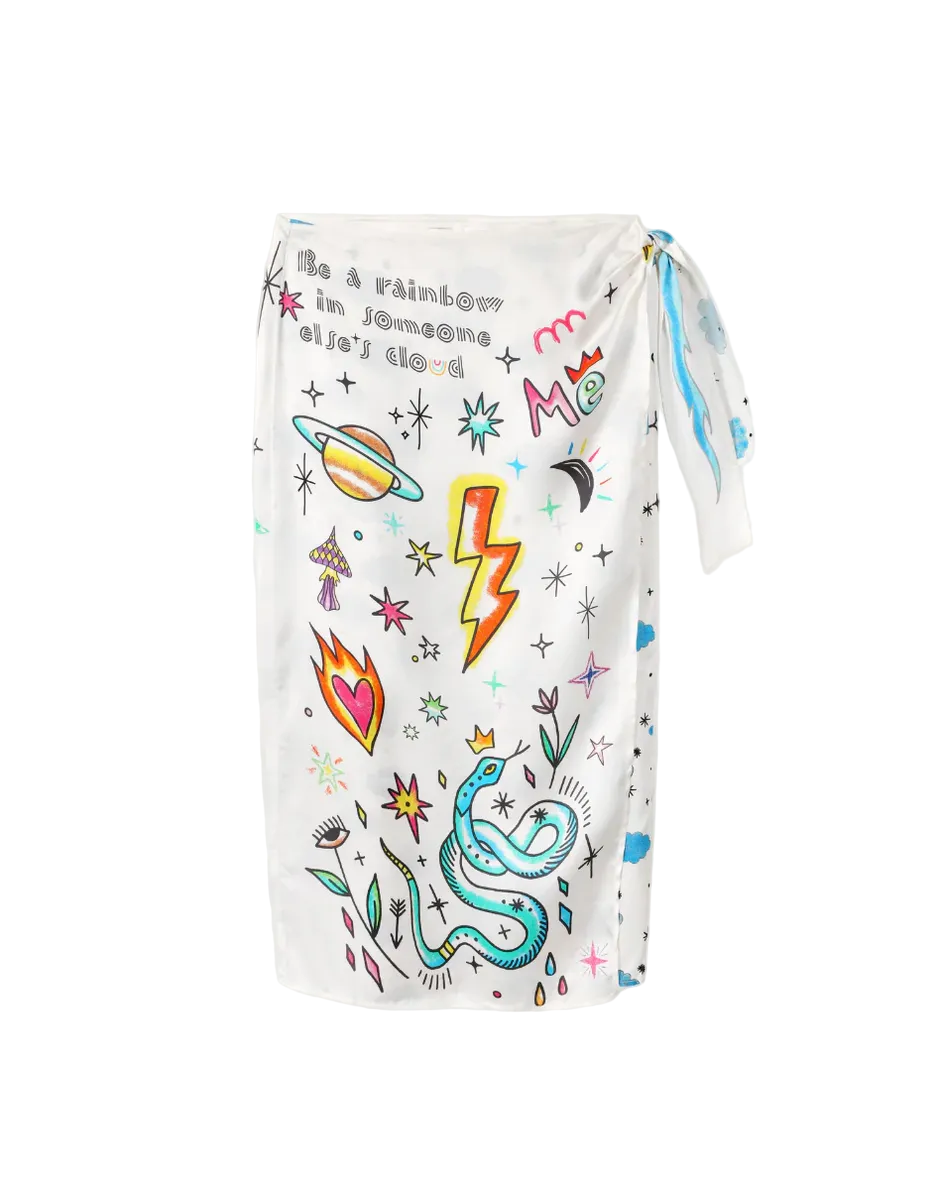 Midi length wrap skirt in our Enlightenment print. Beautiful flowing design with a side waist tie.