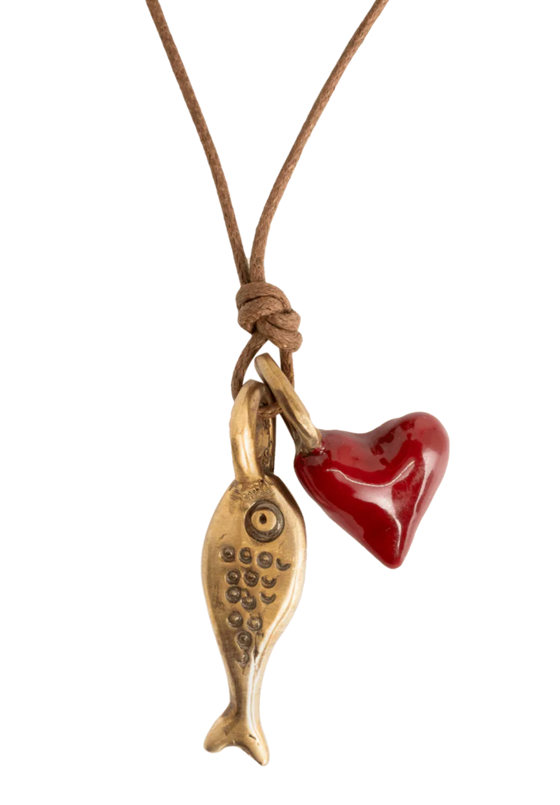 A beloved pendant to the Pesci Che Volano handmade jewellery collection, the Scorfano Bronze and Enamelled Pendant showcases a bronze fish with a vibrant bronze and enamelled red heart. This exquisite piece is carefully crafted in Florence, Italy.