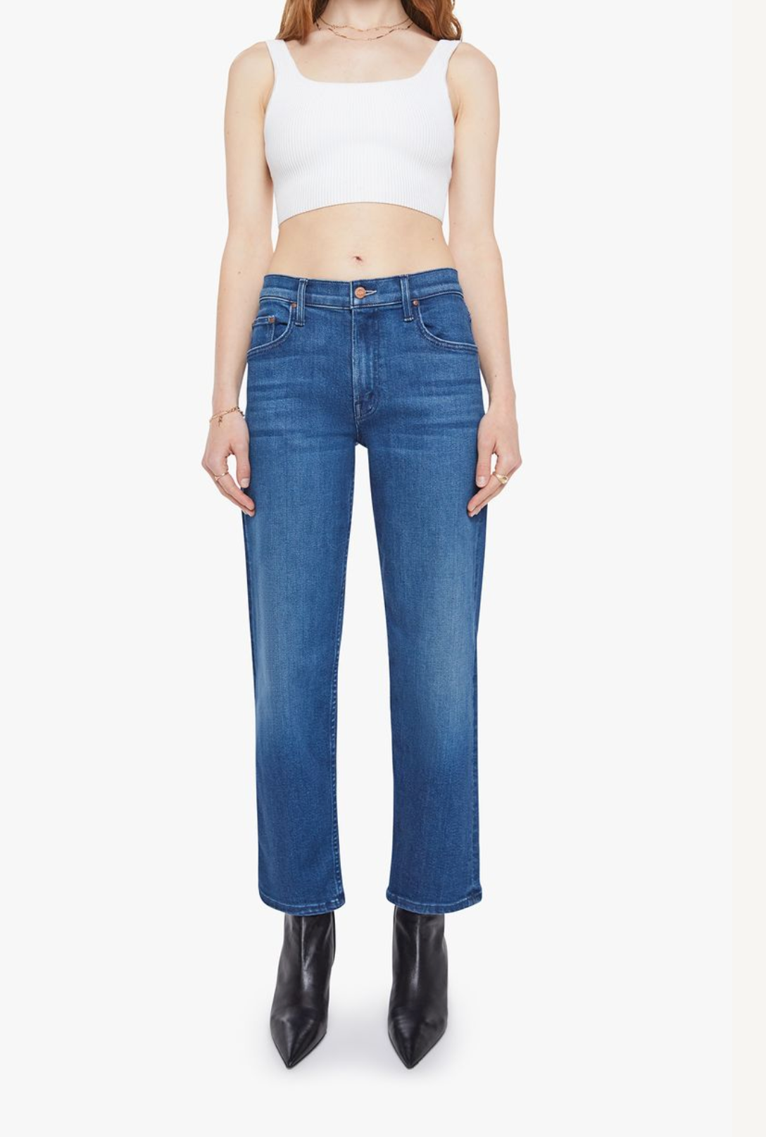New fit. High-rise straight-leg jeans with a zip fly, ankle-length inseam and a clean hem. Made from rigid denim.