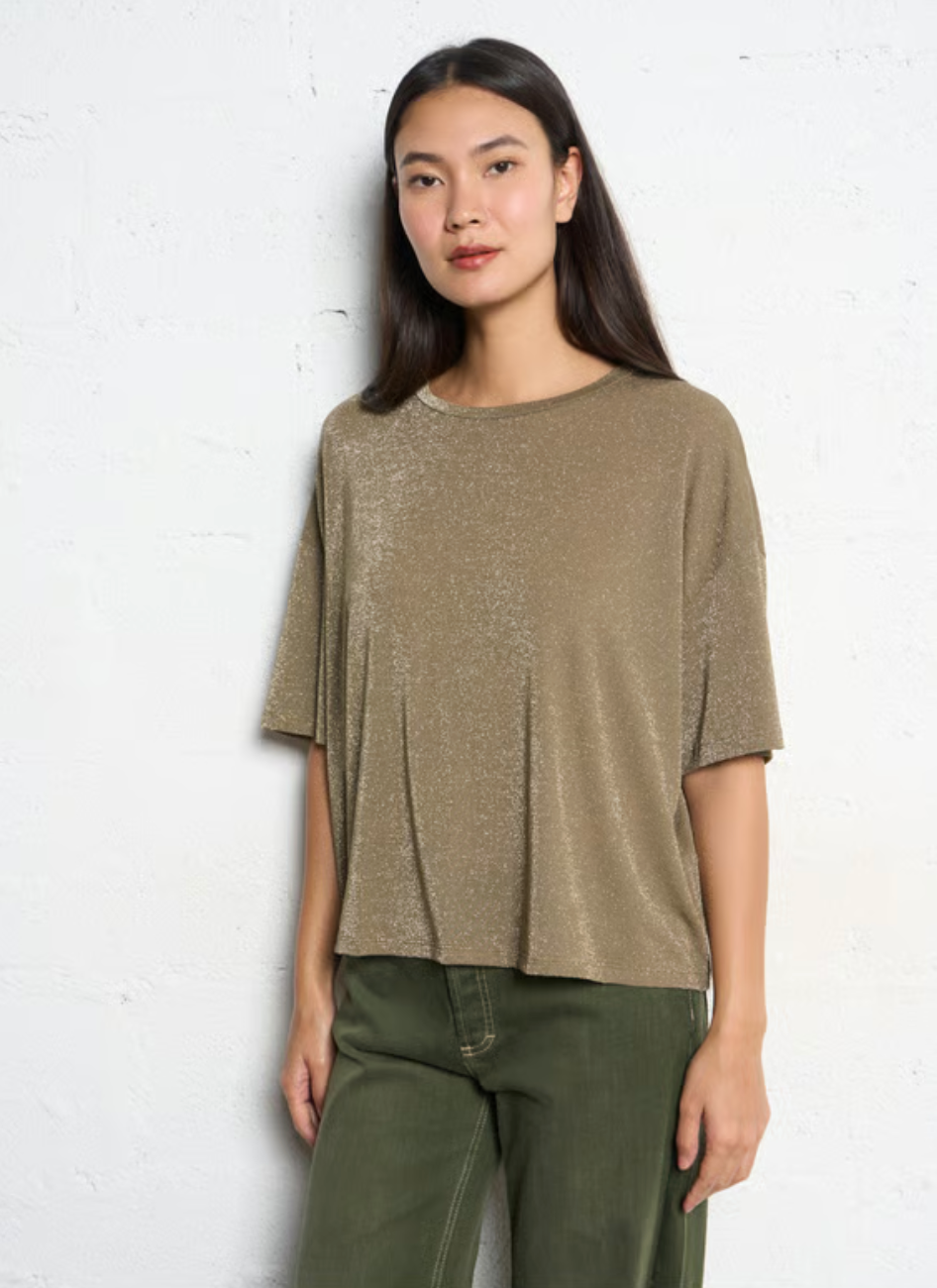 Please Glitter Over Size Top / Khaki