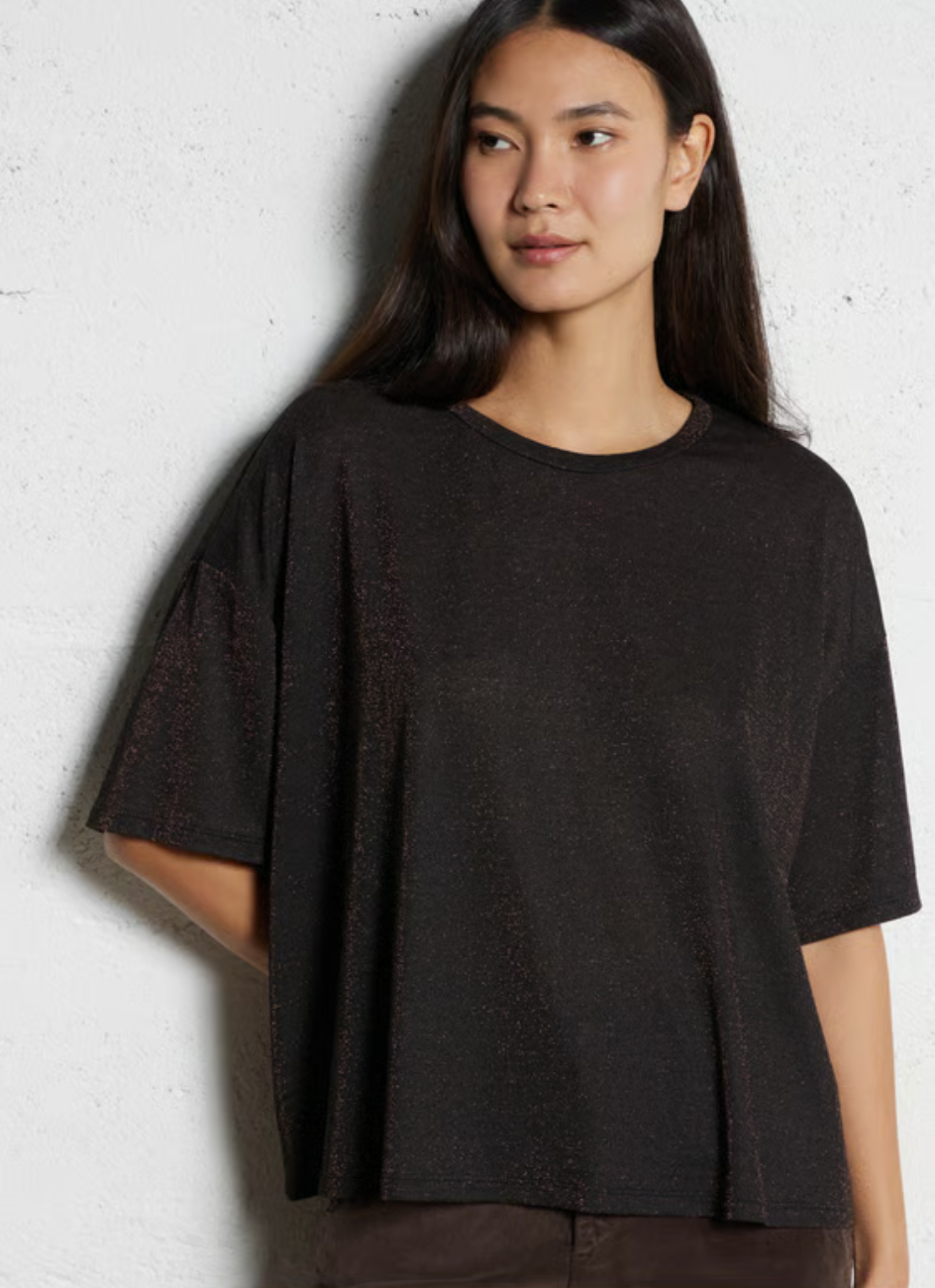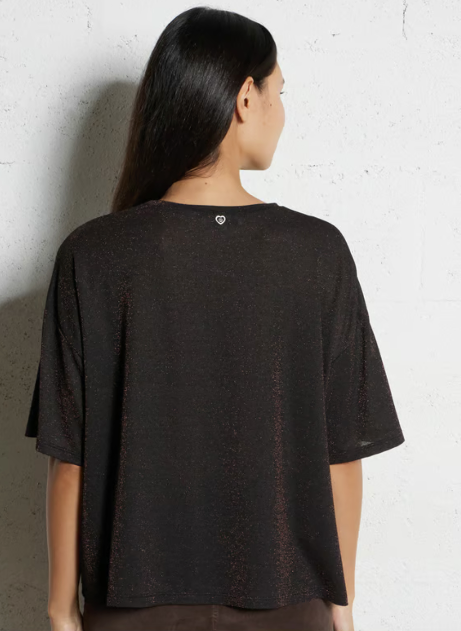 Please Glitter Over Size Top / Marrone