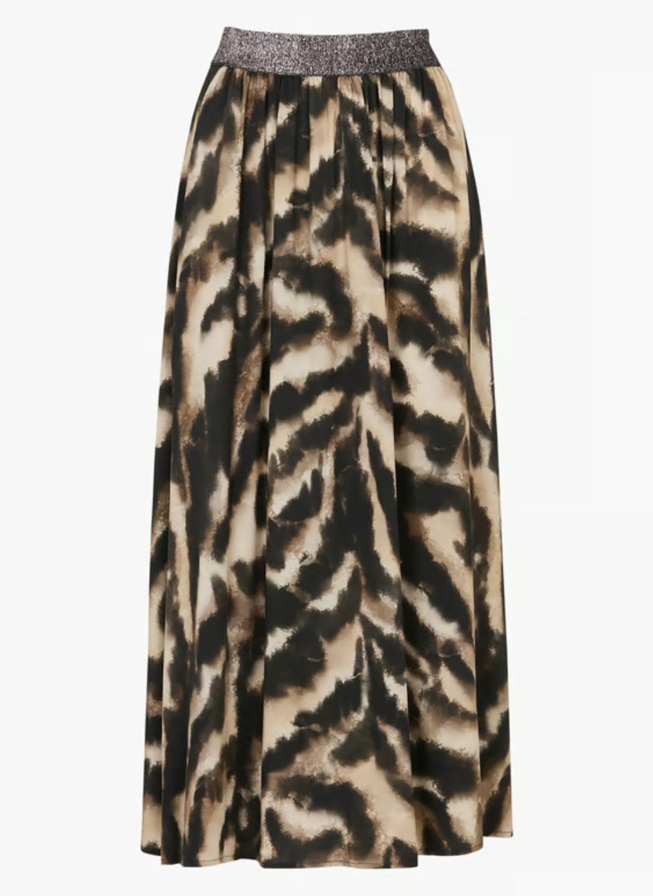 Please Elastic Waist Skirt / Black Beige Print