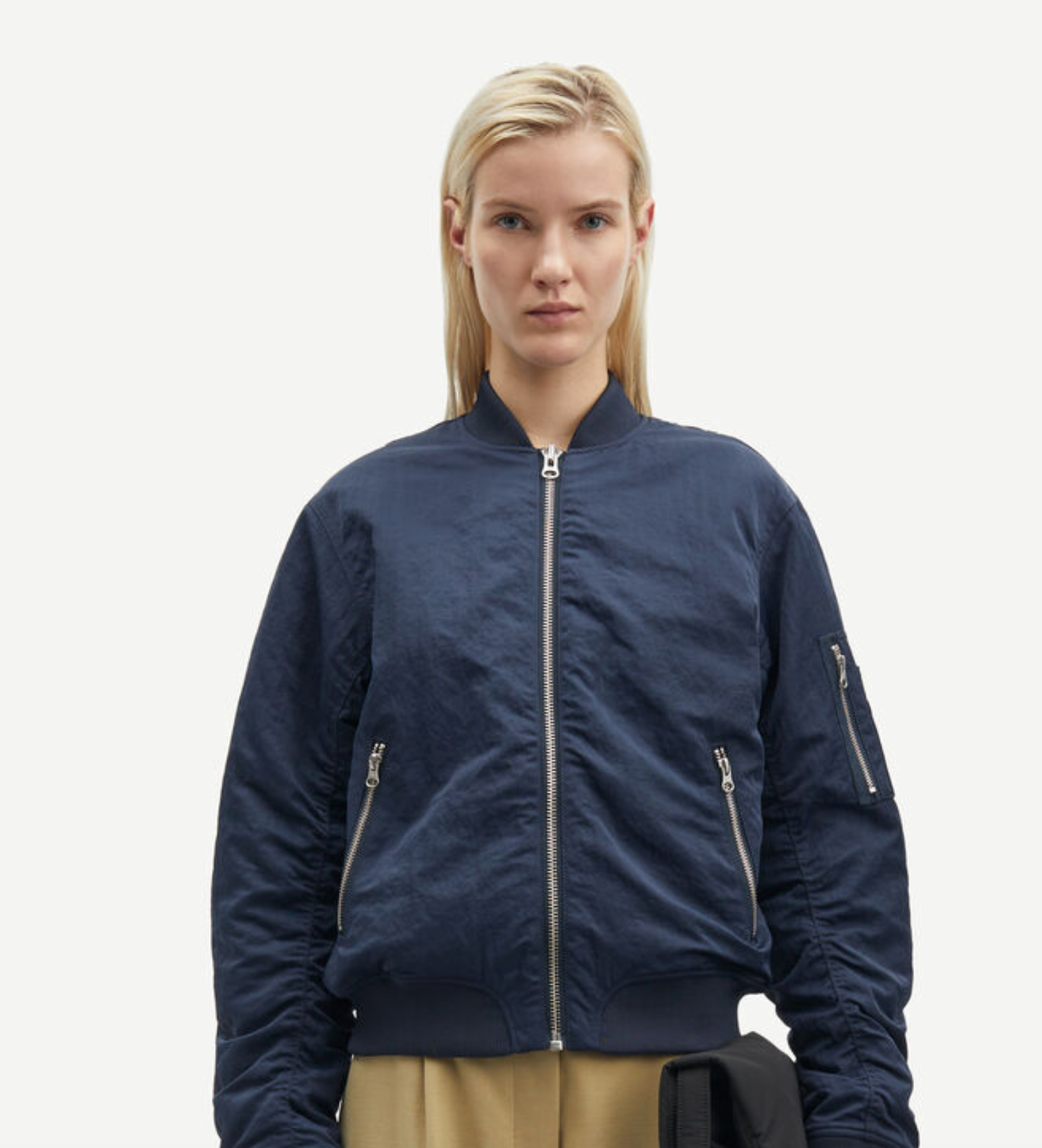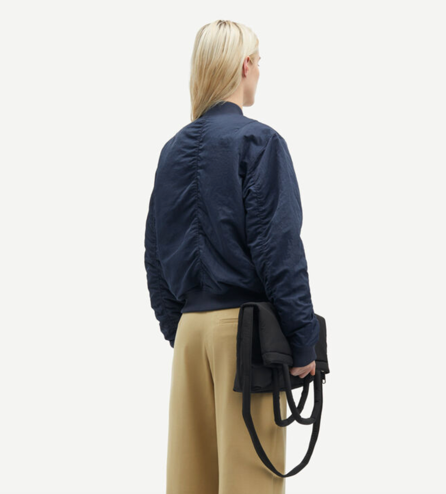 Bomber jacket with a regular fit and dropped shoulders. Zipper closure on the front. Rib-knitted collar, cuffs, and hem. Zipped side slit pockets on the front, zipped pocket on the sleeve, and welt pocket on the inside. Padded with PrimaLoft. Main lining made from 100% recycled polyester. Main material made from 100% recycled polyamide. This product contains recycled polyamide derived from pre-consumer waste.