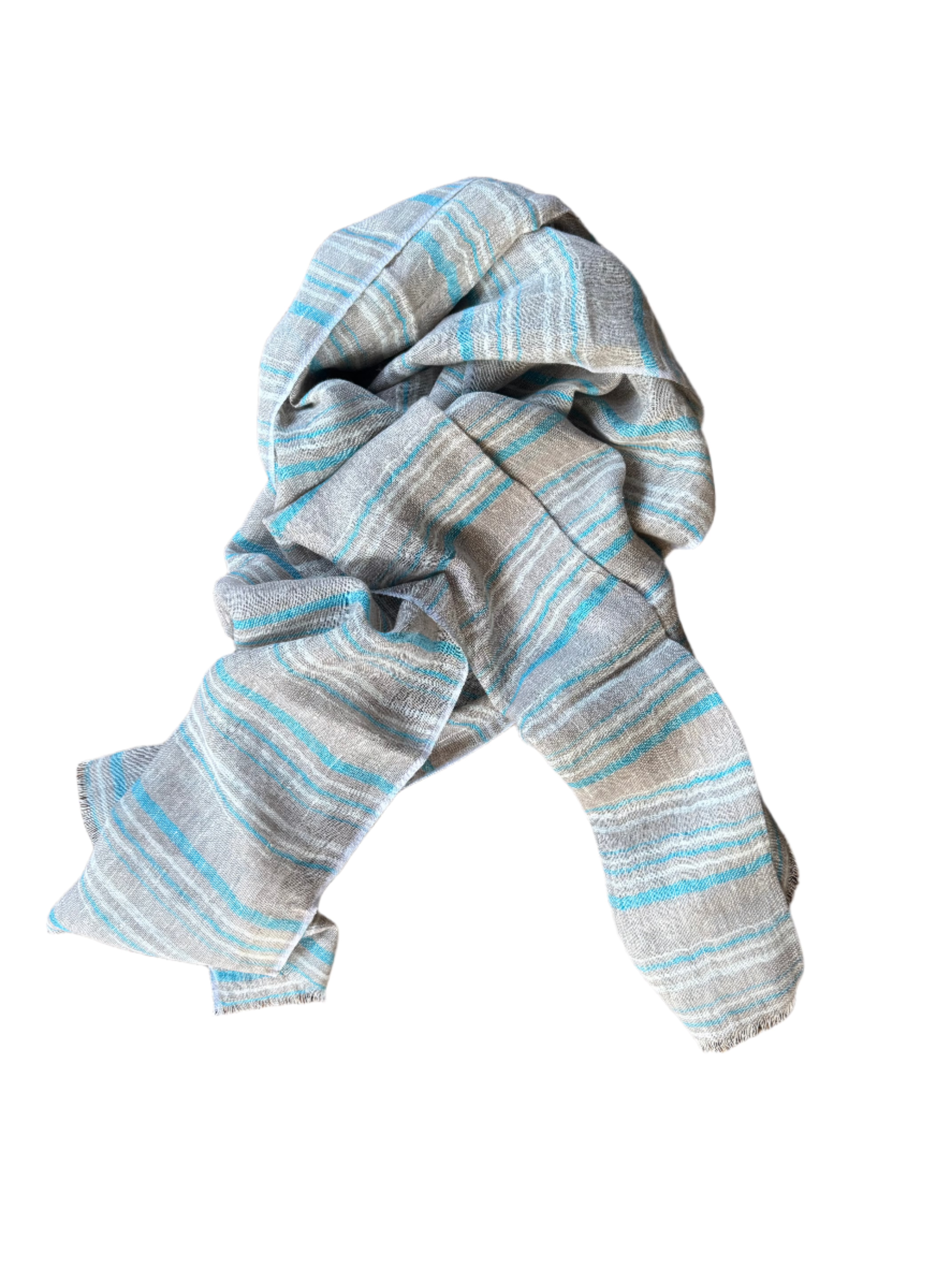 Linen Scarf Ligh Ash/ Turquoise Stripes