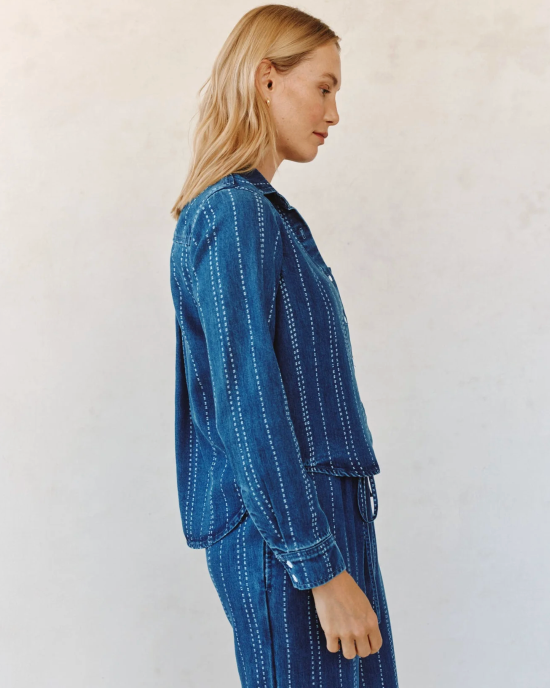 Bella Dahl Long Sleeve Cropped Shirt / Indigo Stripe