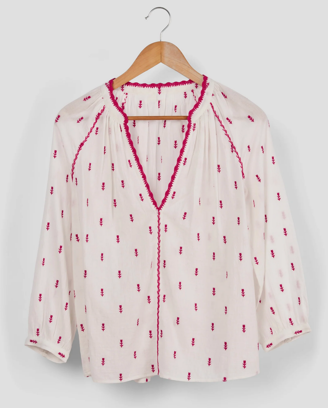 Made from non sheer cotton muslin, this blouse has a classic bohemian look with its faggotting stitches & loose gathered shape