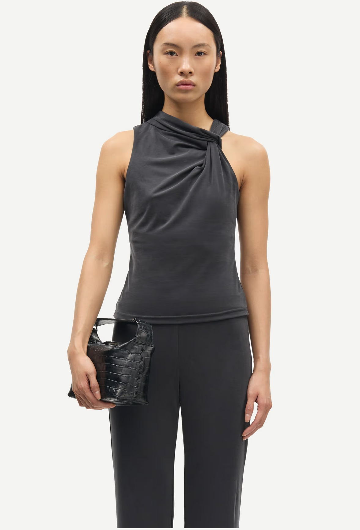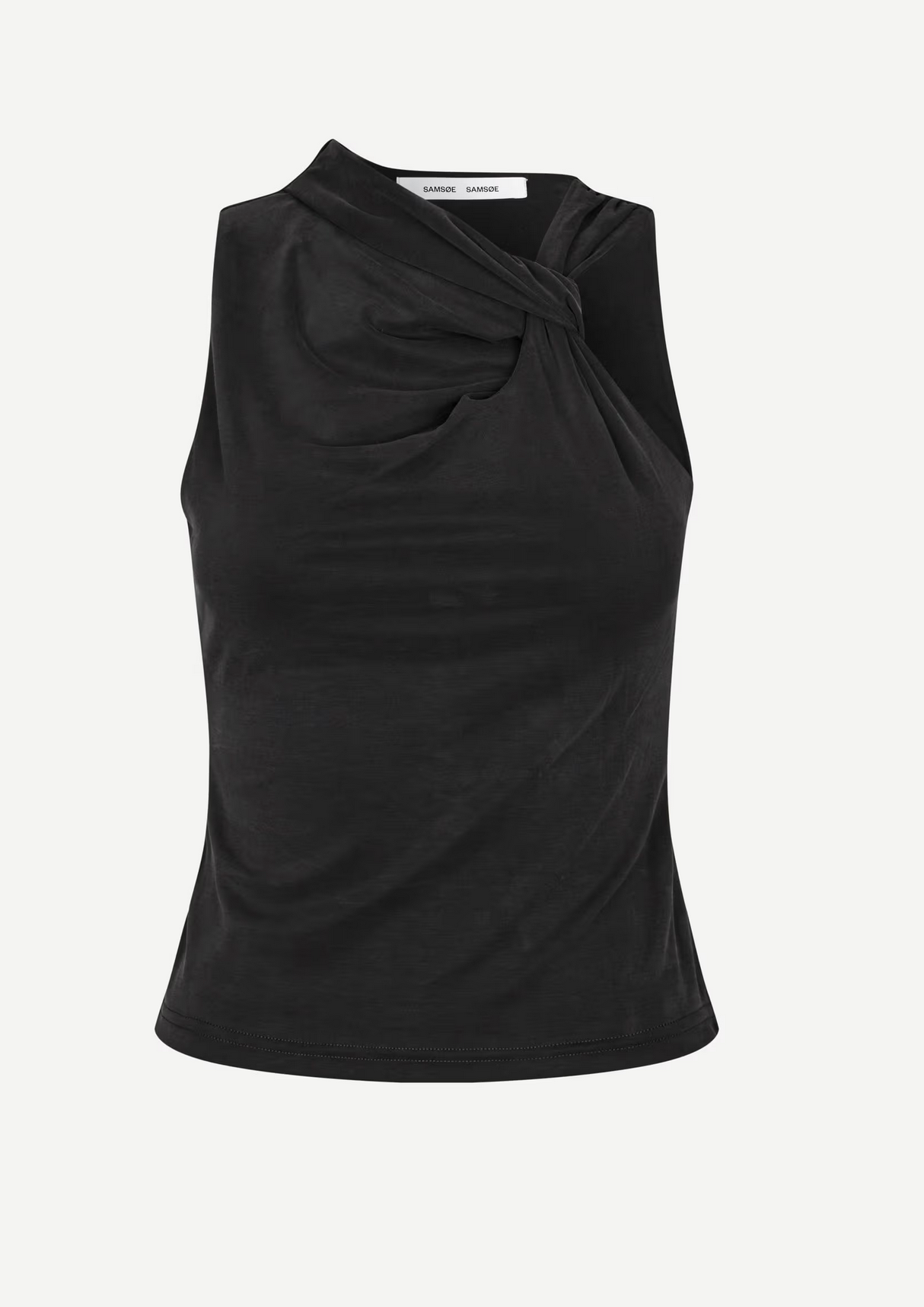 Sleeveless jersey top with a slim fit. Twisted detail at the neck. Main material made from an elastic blend of TENCEL™ Modal and recycled polyester. This product contains TENCEL™ Modal fibres, certified with the EU Ecolabel for textile products (licence no. AT/016/001) for environmental excellence.