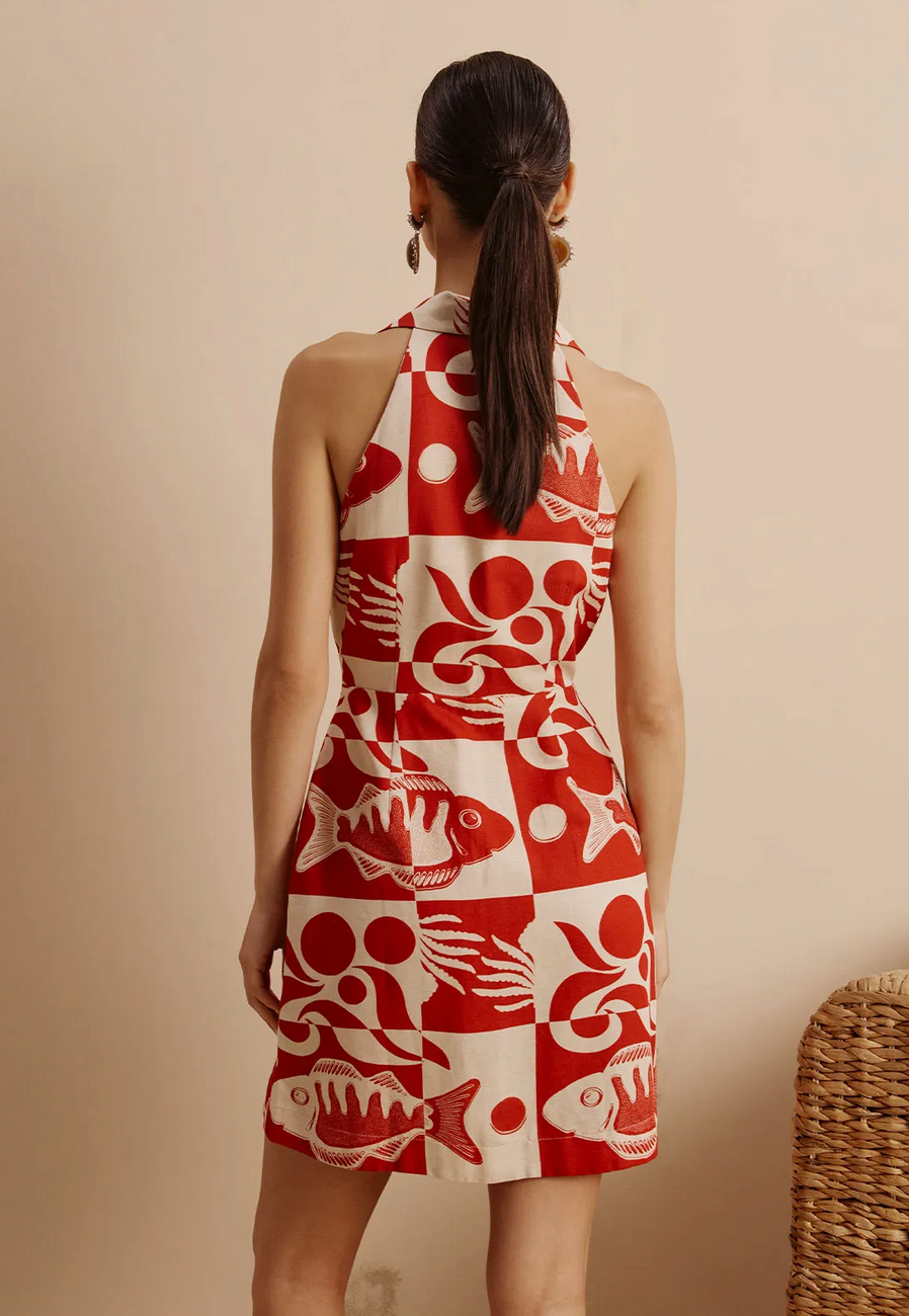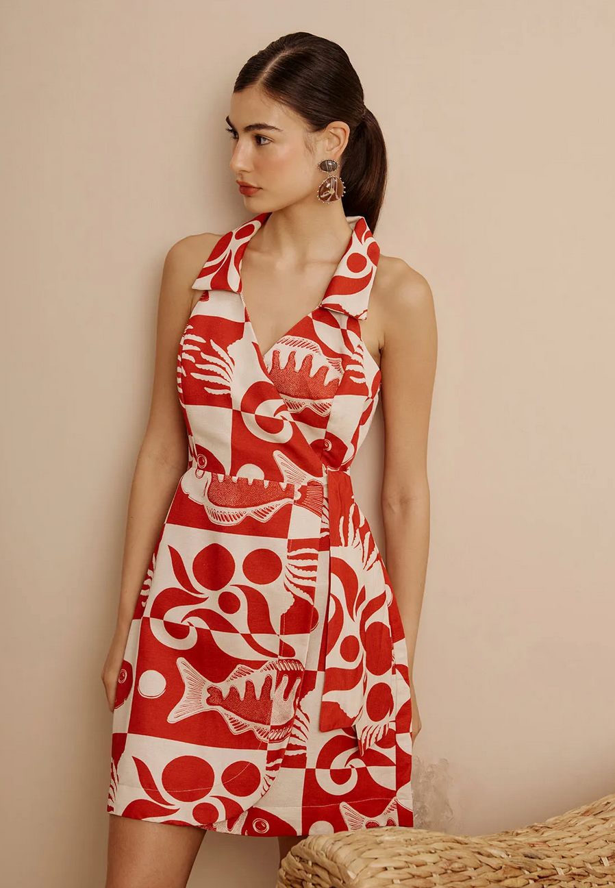CaCay Tucunaré Print Wrap Dress / Red Fish