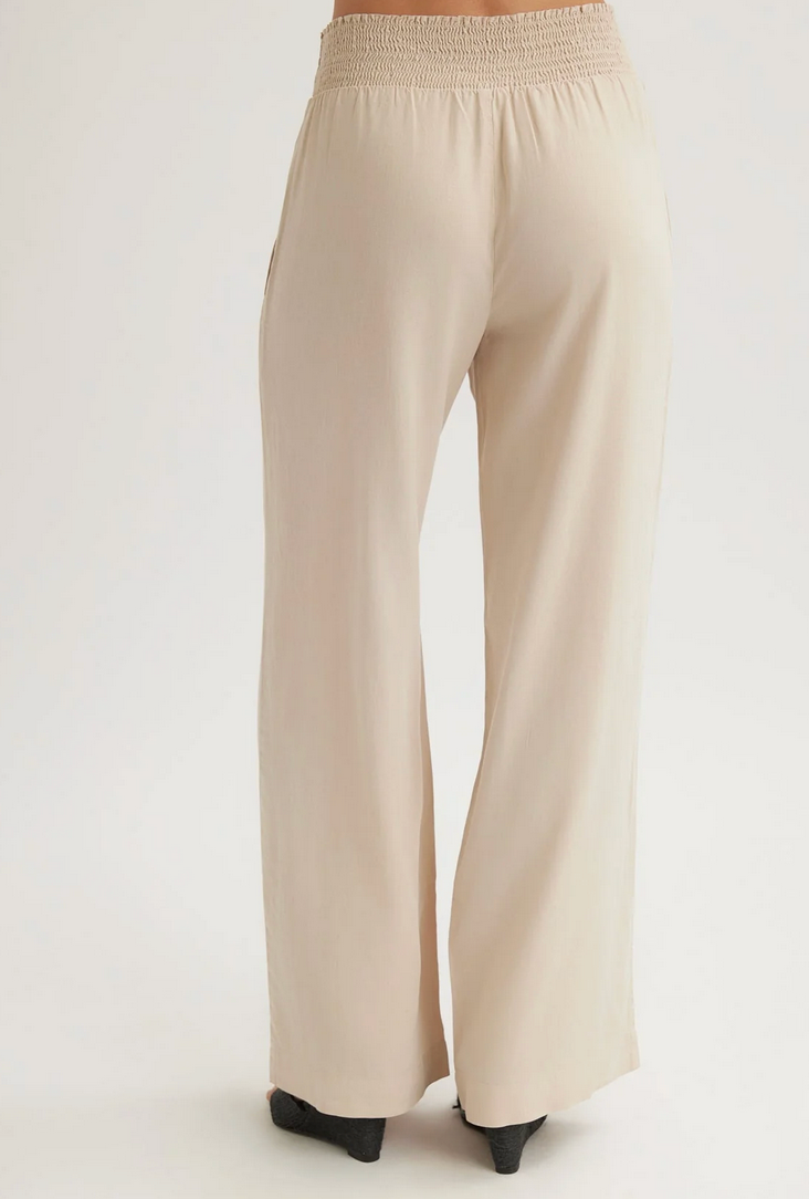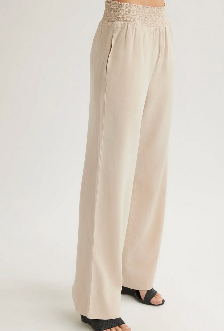 Bella Dahl Smocked Waist Wide Leg Pant - Linen Sand