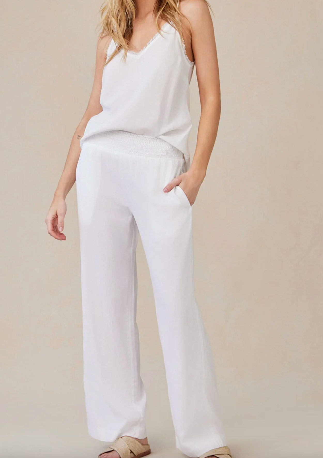 Bella Dahl Smocked Waist Wide Leg Pant - White