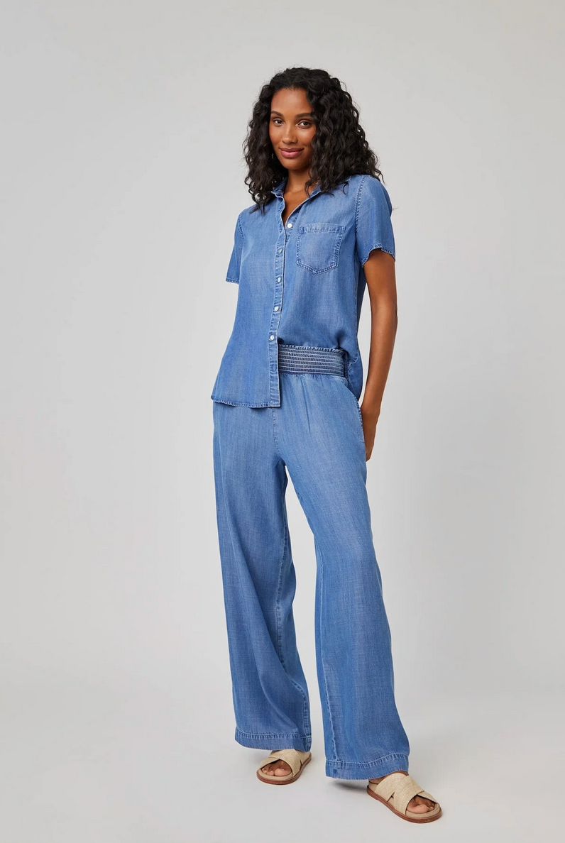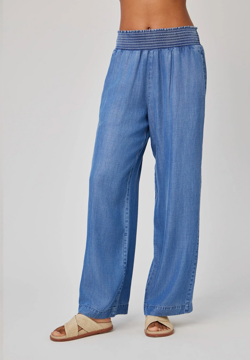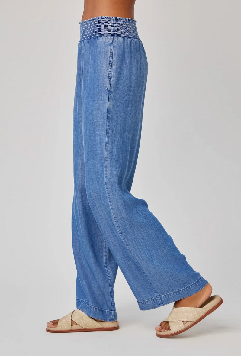 Bella Dahl Smocked Waist Wide Leg Pant - Moonlit Haze Wash