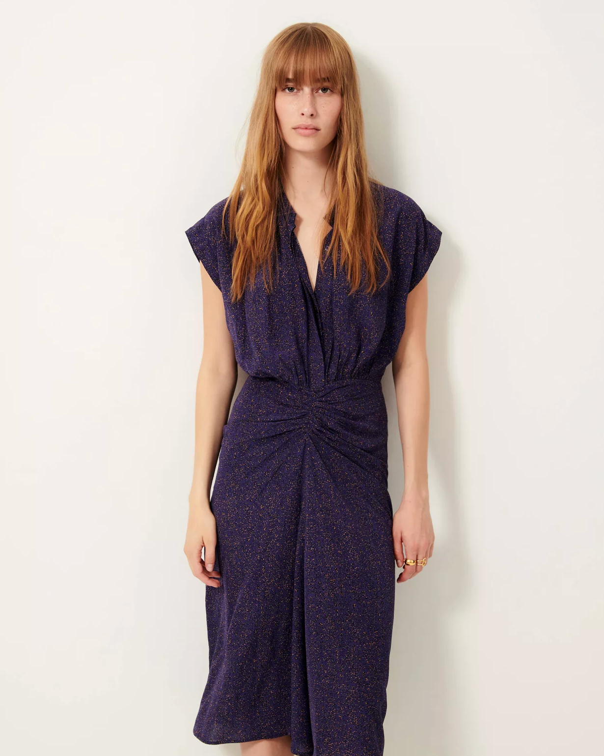 Gathering details at the front of the waist.