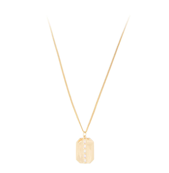 Add a dose of luxury with this charming necklace that comprises a polished gold disc with a centre trail of 5 rectangualar white crystals.