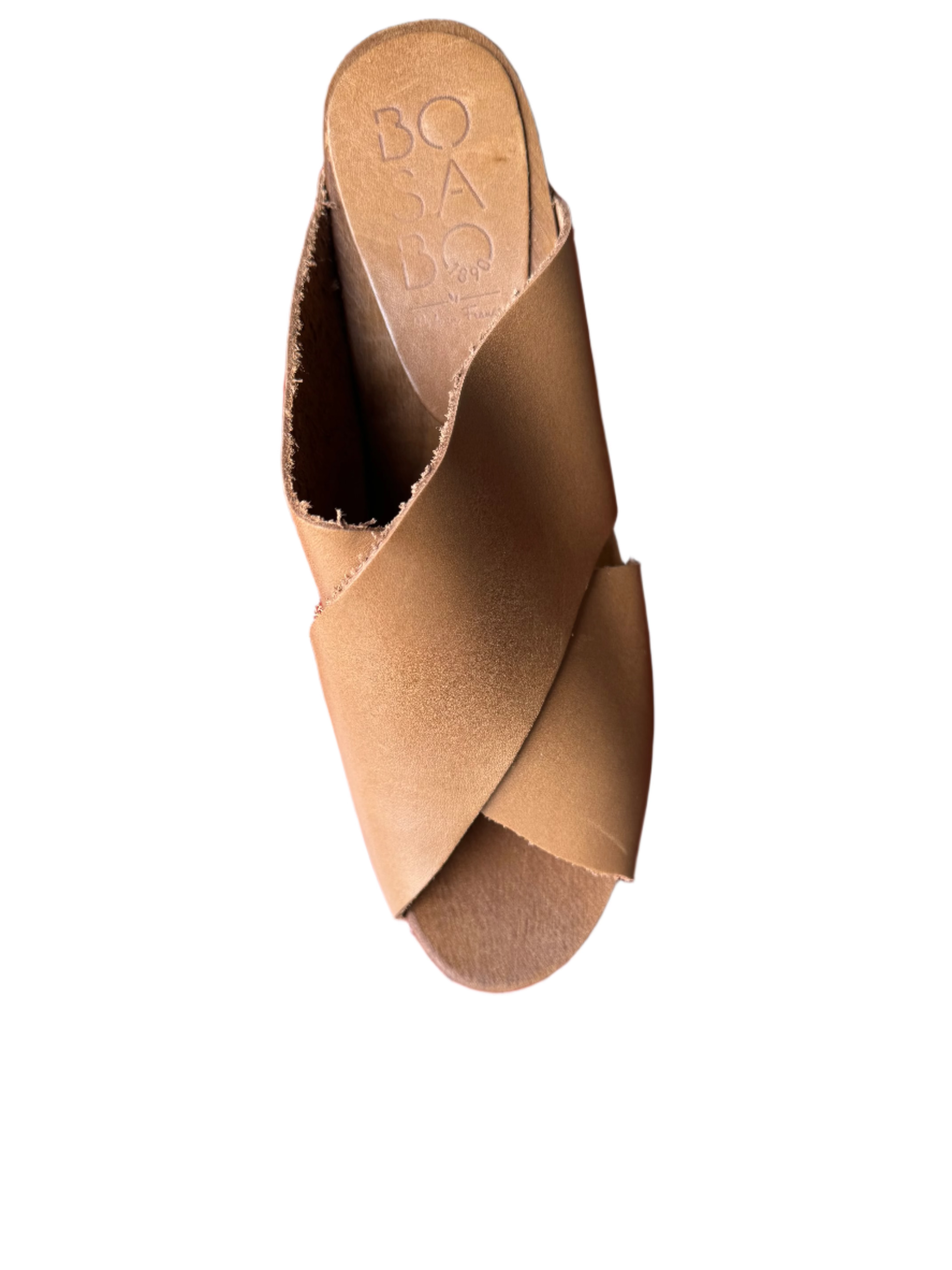 Bosabo High Heel Cross-over Mules / Light Tan Leather