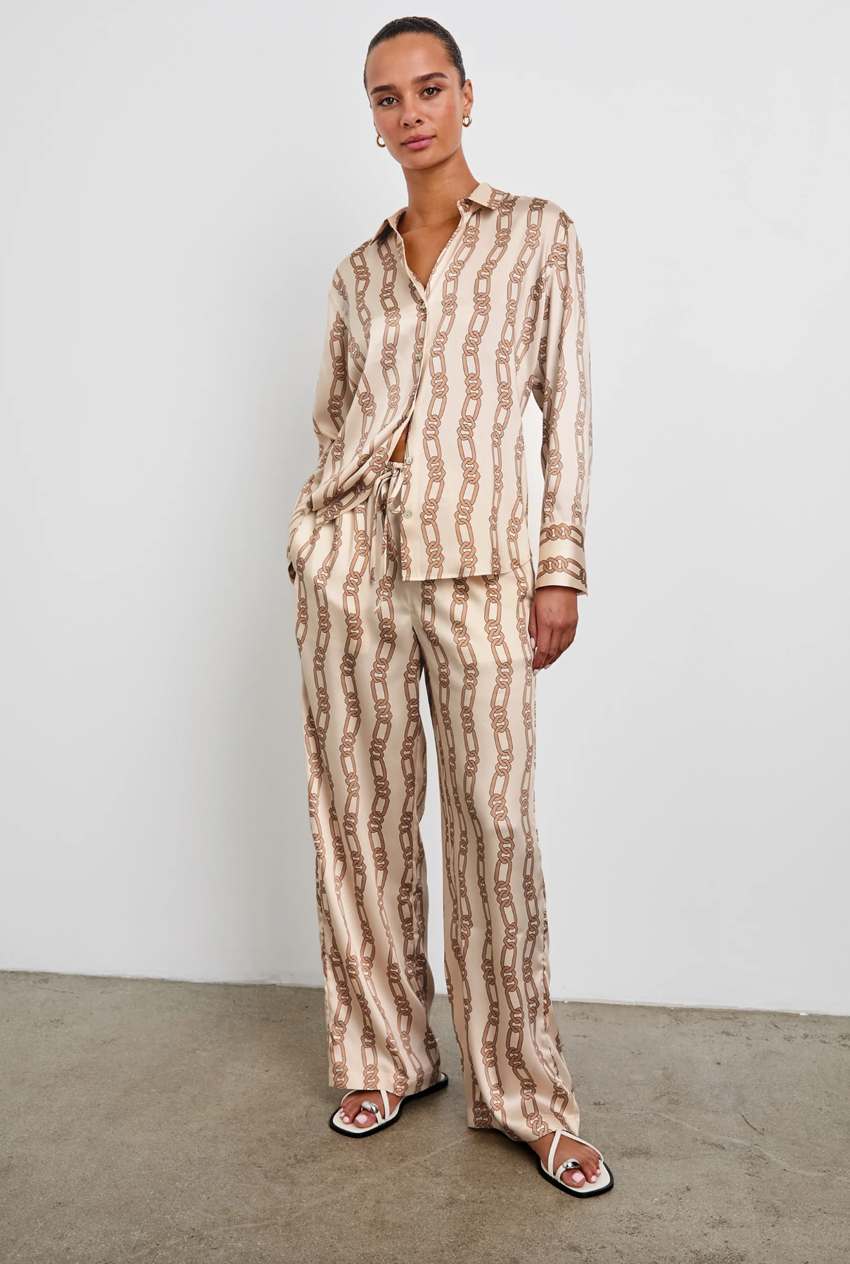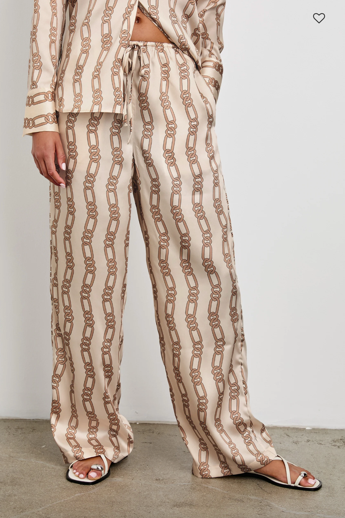 Experience elevated comfort with the Damani. This wide-legged drawstring pant features pockets and a statement-making, gold-link print. Pair with the Ledger shirt for an ultra-luxe outfit designed for everyday wear.