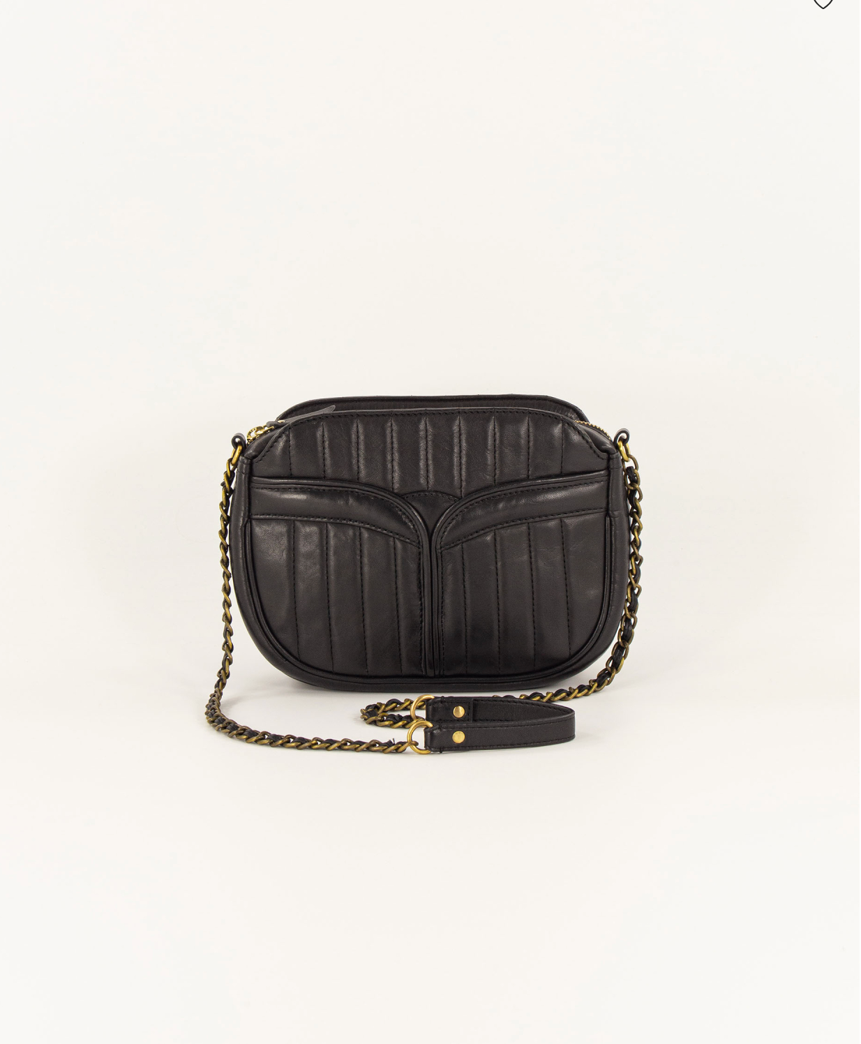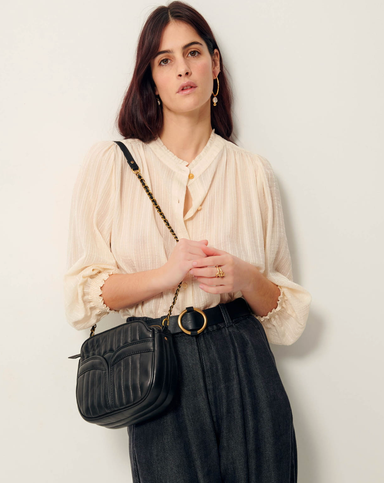 Bag in topstitched, quilted lamb leather with a chain strap.