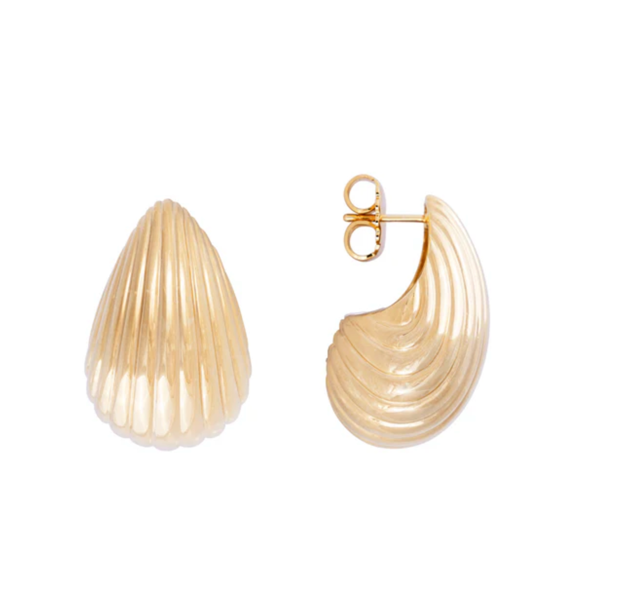 These simply stunning textured studs carry an antique shell aesthetic. Comprising brass 18k gold plate, an elegant, versatile and light weight statement earring that will elevate any outfit and turn heads!