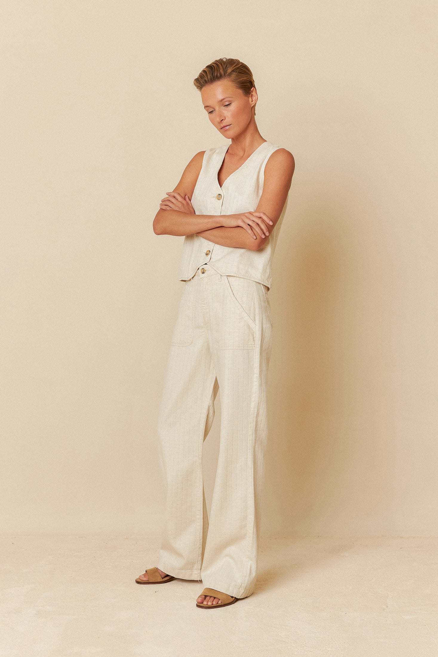 Indi & Cold Pinstripe Vest / Crudo