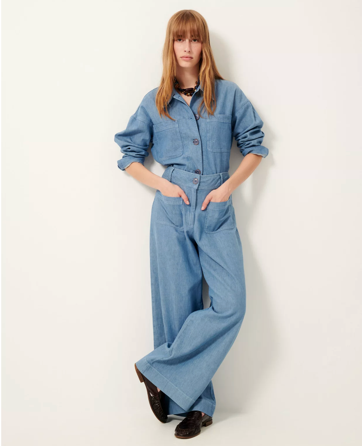 Overshirt with patch pockets in cotton-linen chambray twill, woven in Spain.