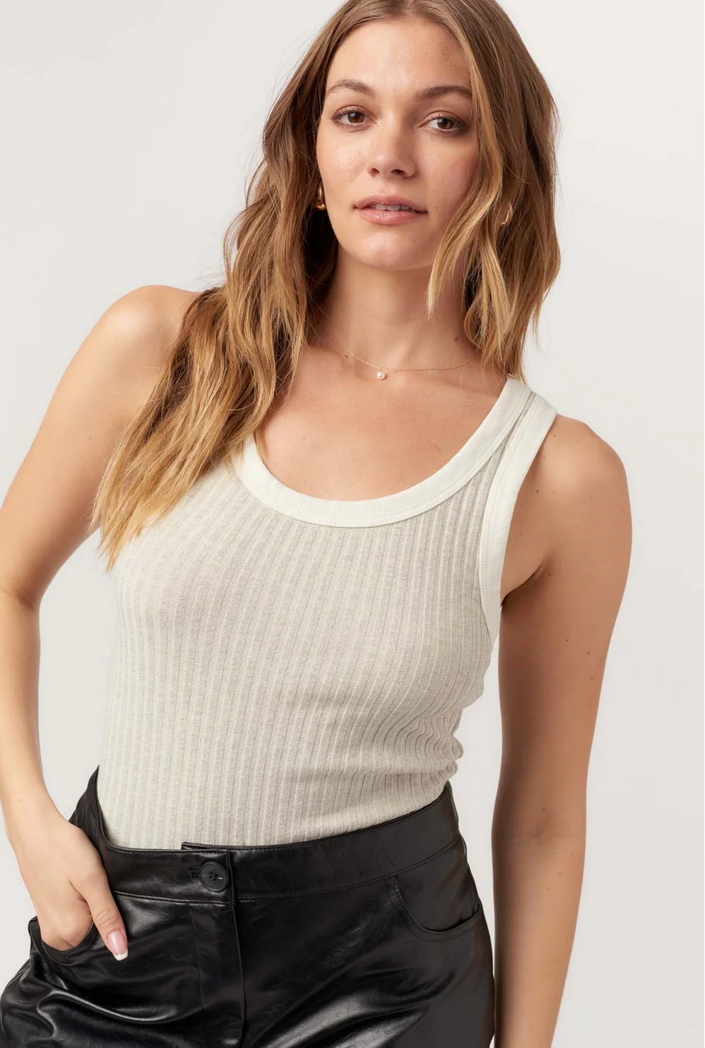 Our Cooper Sweater Rib Tank is the perfect blend of the comfort and fabric of your favorite sweater with the flattering fit of your go-to tank top. The wide rib fabric, scoop neck, and fitted silhouette keep this tank looking structured while still feeling comfy. Dress up with leather pants and heels for a night out or keep it casual with jeans for a weekend vibe.
