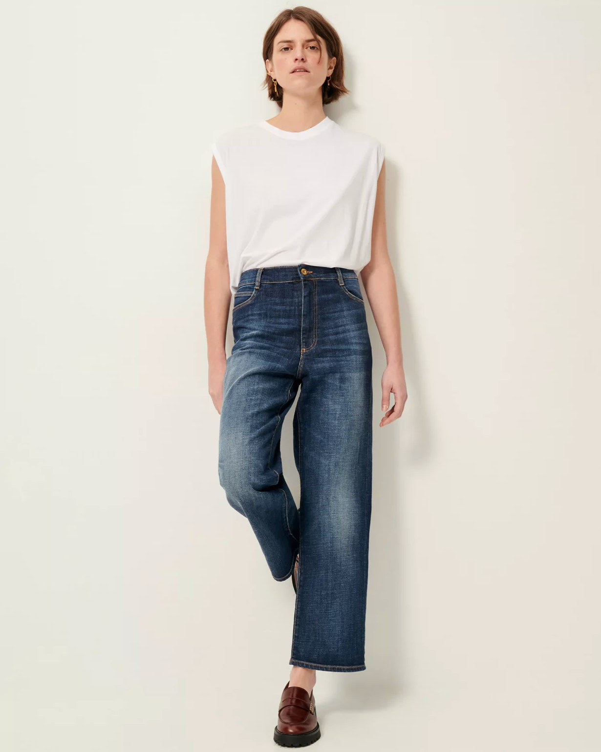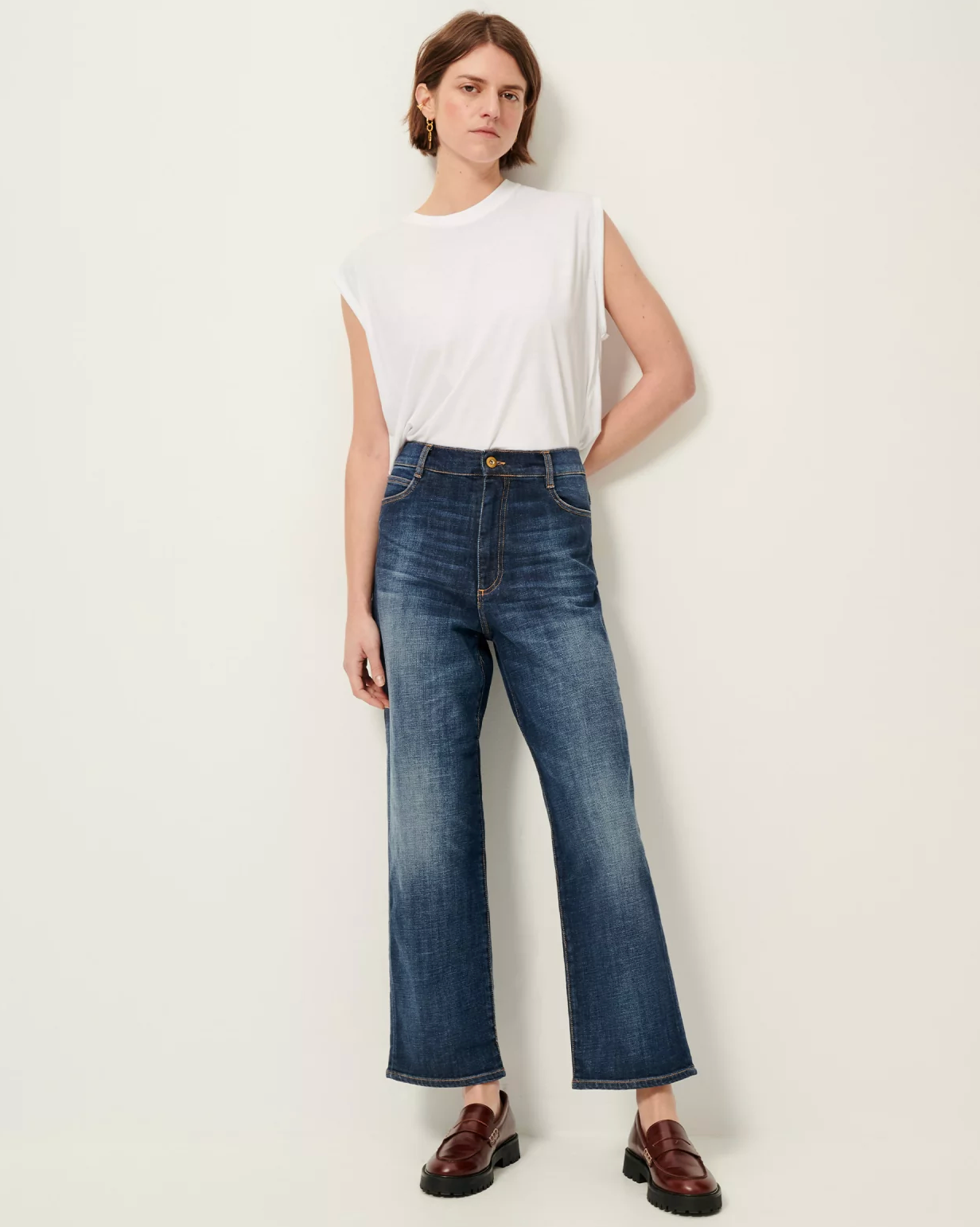 Italian pockets, coin pocket and back patch pockets with double topstitching.